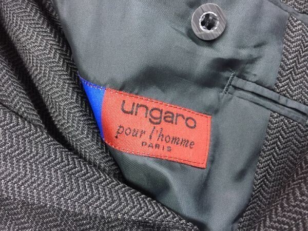 ウンガロ Ungaro オールド レトロ モード 古着 ヘリンボーン ツイード テーラードジャケット メンズ 2つボタン ウール100% グレー です。