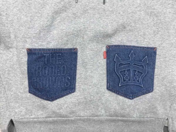 ロデオクラウンズ RODEO CROWNS アメカジ ロゴ エンボス デニムポケット スウェット フーディー パーカー レディース 綿混合 グレーです。
