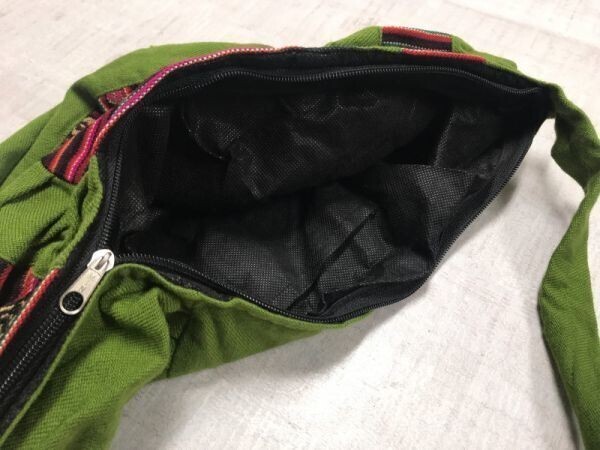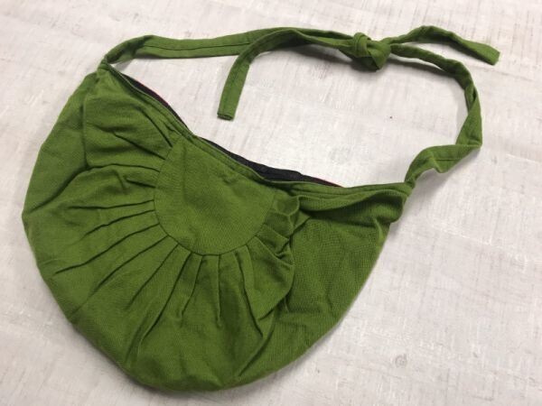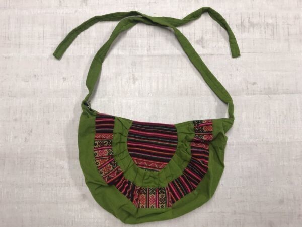 ヒッピー 民族エスニック オリエンタル 配色切替 半月 半円 ショルダーバッグ ボディバッグ 鞄 男女兼用 裏地不織布 紐調節 黄緑 です。