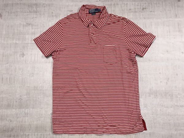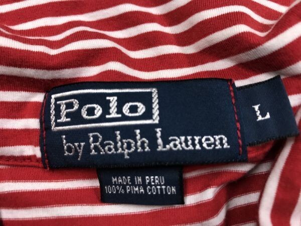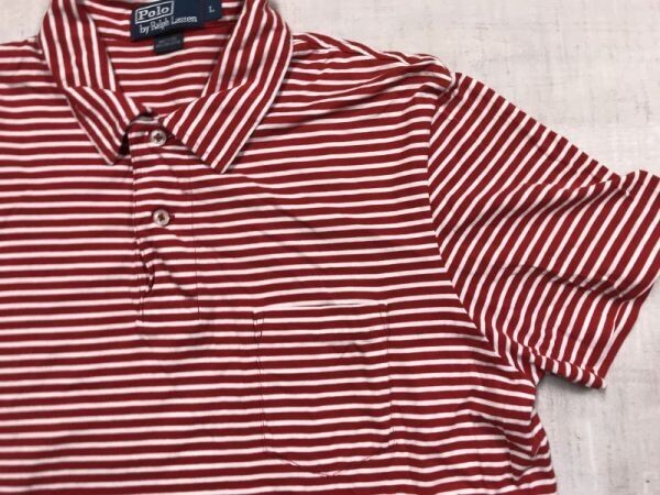 ポロ ラルフローレン Polo by Ralph Lauren アメカジ トラッド マリン ボーダー フライス 半袖ポロシャツ メンズ コットン100% L 赤/白 です。