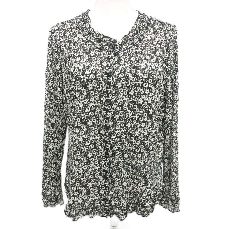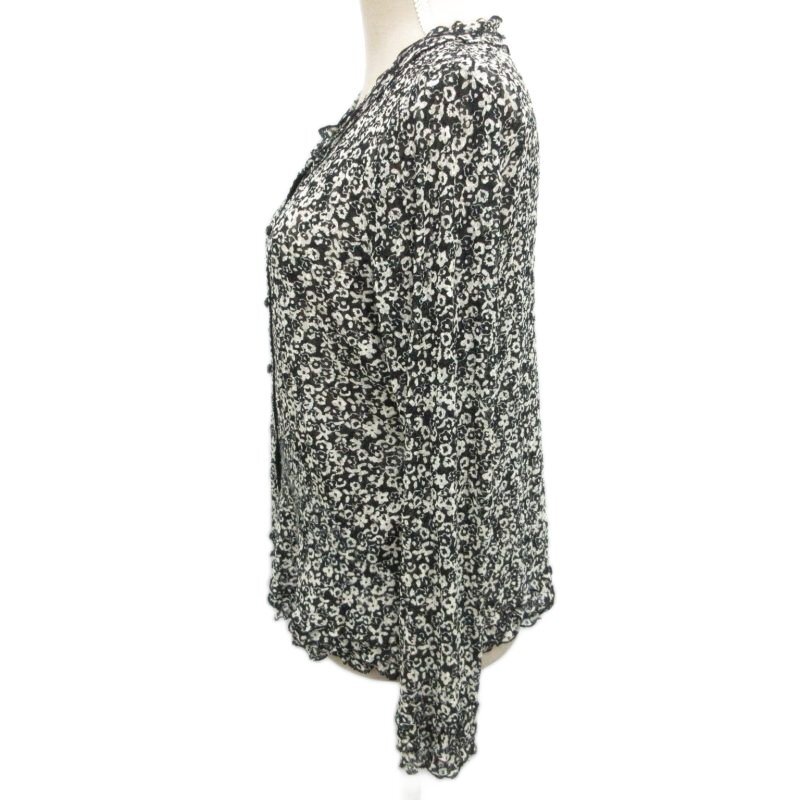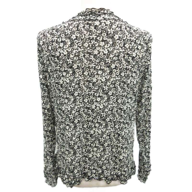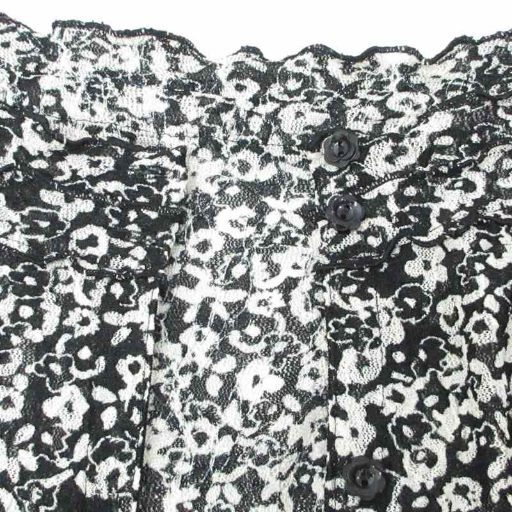 レリアン Leilian カーディガン ニット 花柄 フリル 長袖 13 約XL アイボリー ブラック 系 ■YHS4 0915 レディース