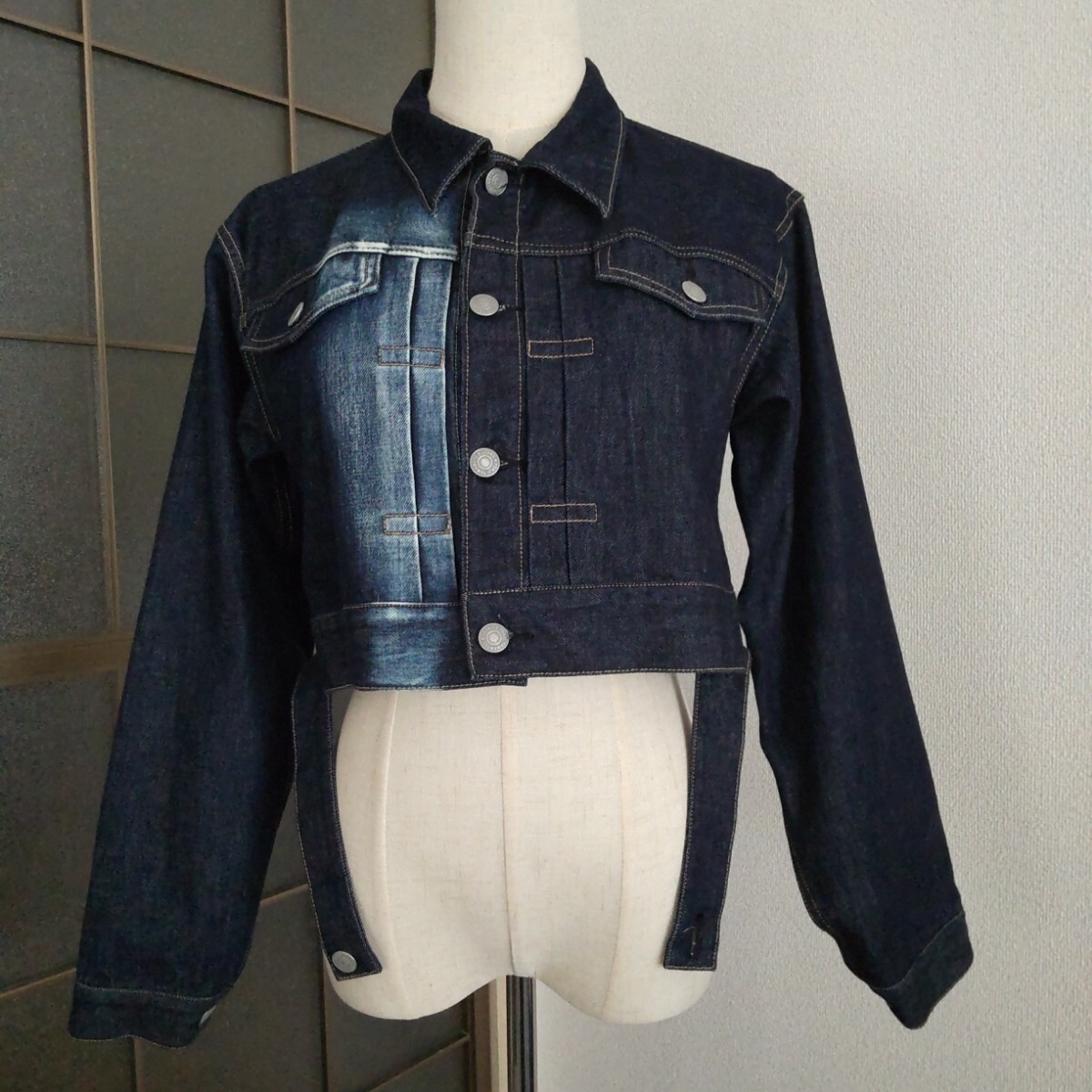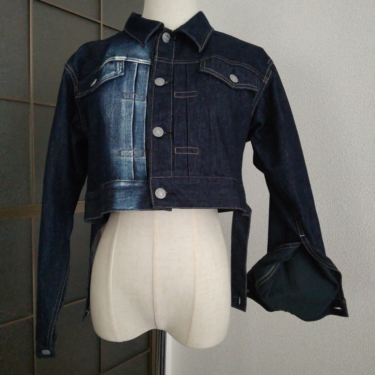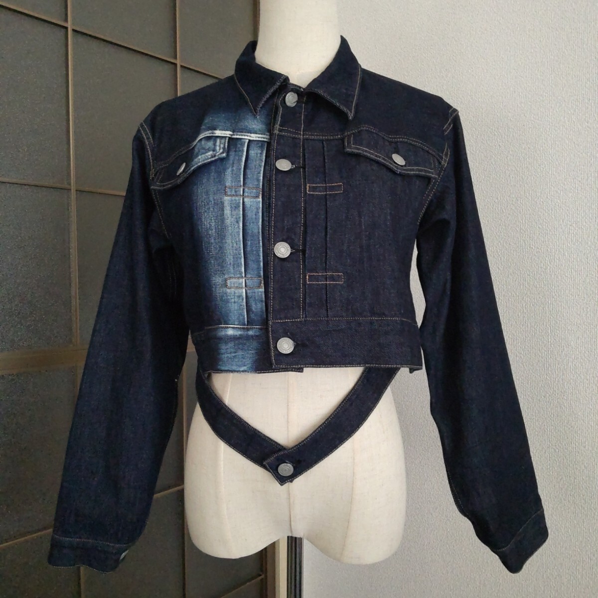 ヨウジヤマモトの2022-23秋冬コレクションを象徴するデニムシルエット。デニムで仕上げたショートブルゾン。
