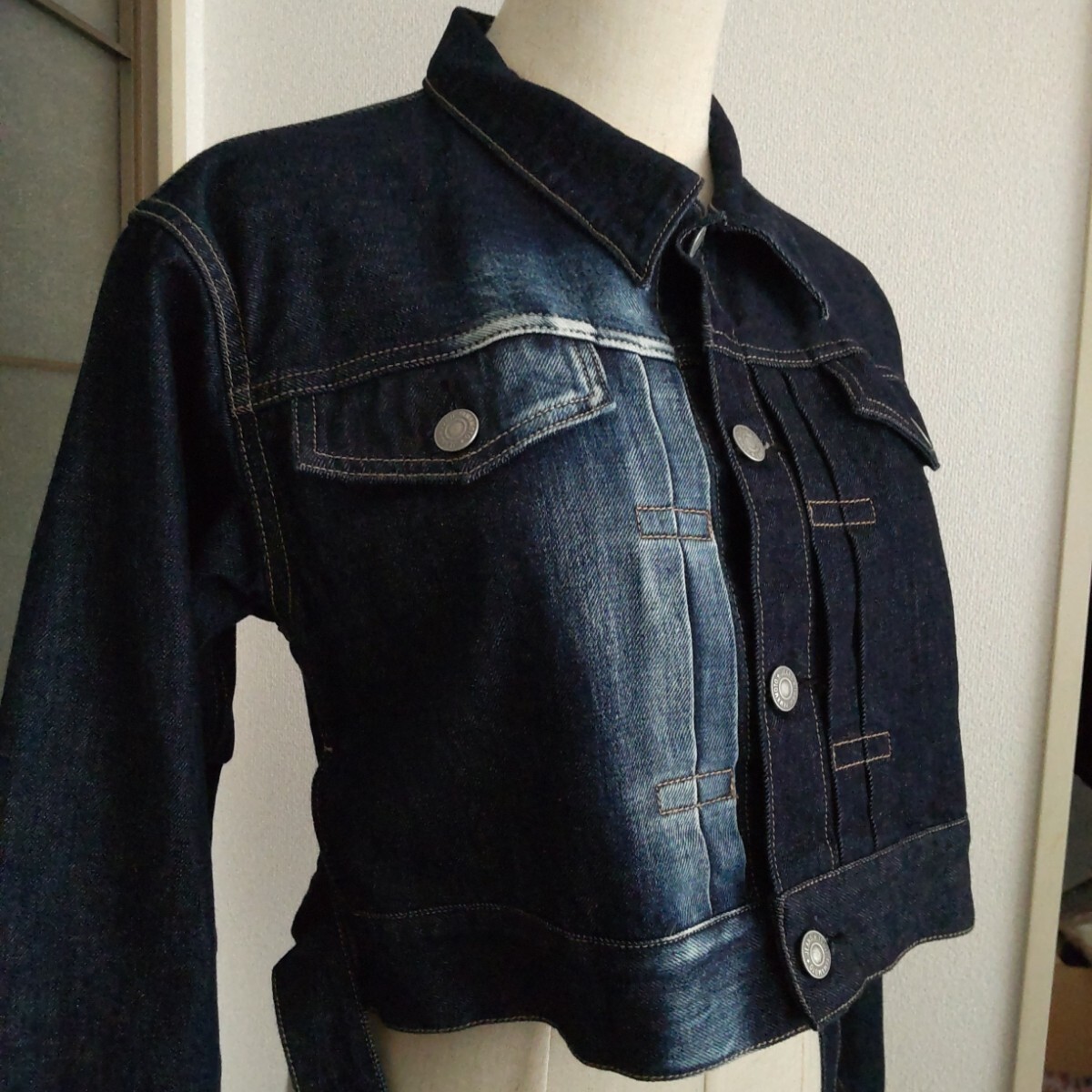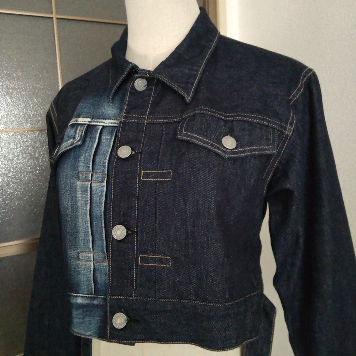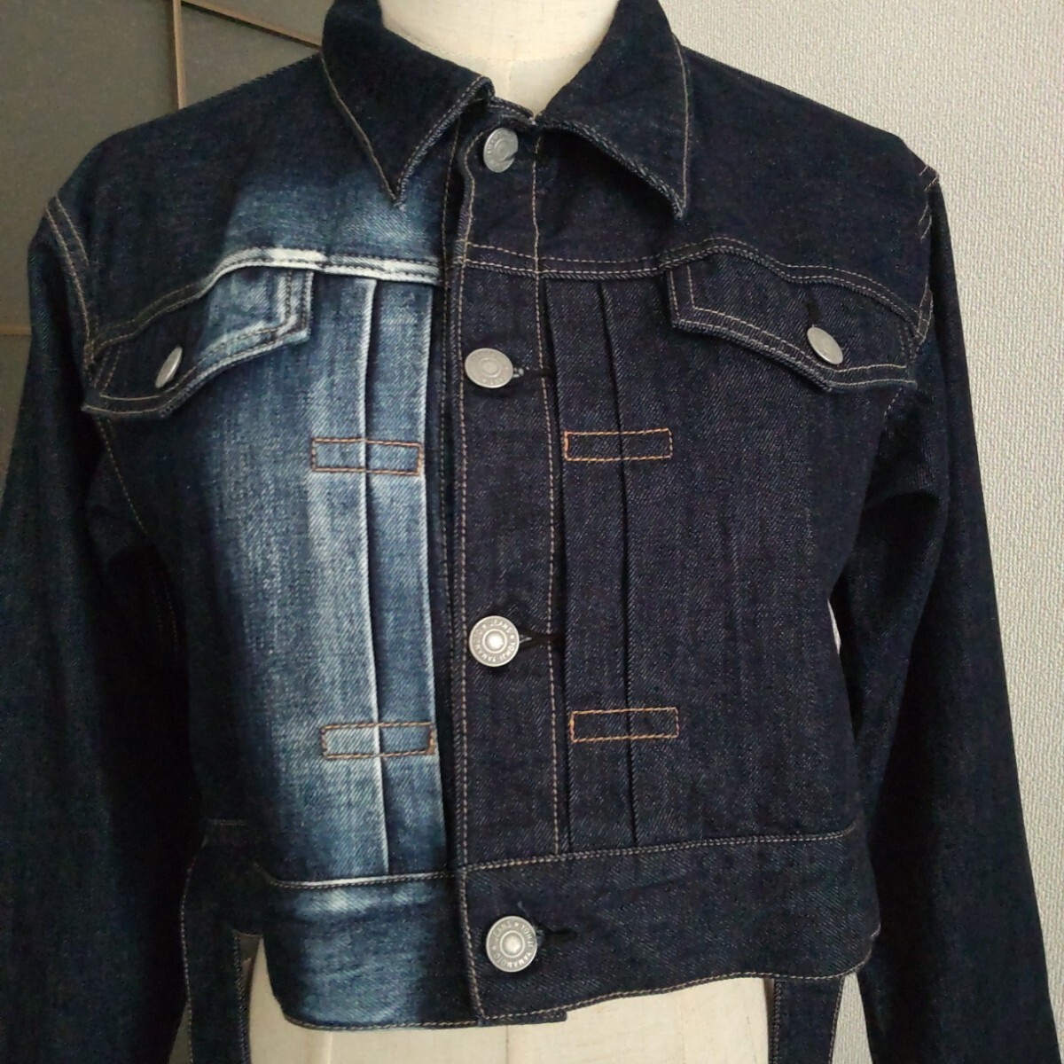 ヨウジヤマモトの2022-23秋冬コレクションを象徴するデニムシルエット。デニムで仕上げたショートブルゾン。