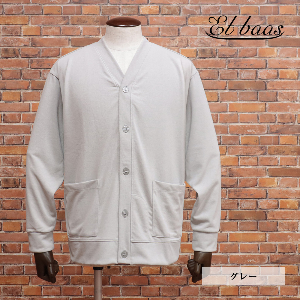 Et baas/Mサイズ/カットソー カーディガン 日本製 Vネック UVカット 吸水速乾 エバース 新品/グレー/jk557/