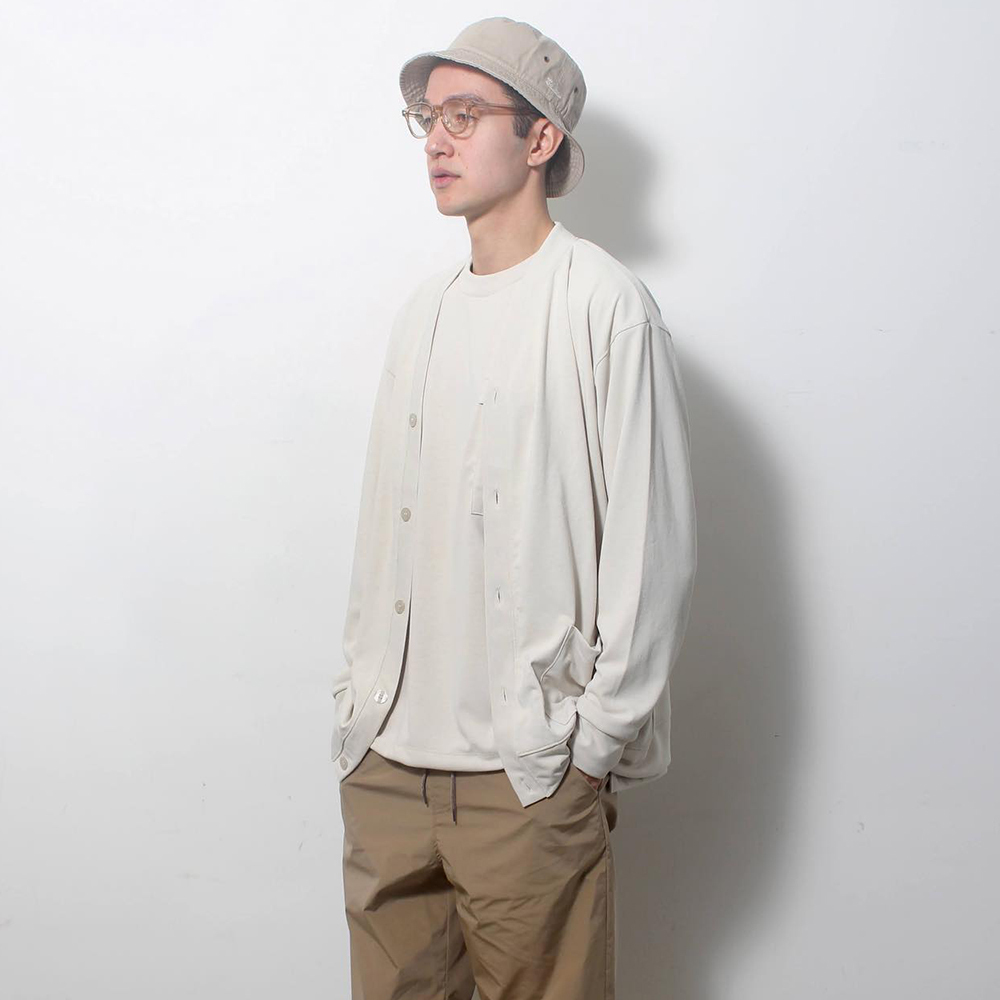 幅広いコーディネートに活躍してくれる、シンプルで使い勝手のよいカットソーカーディガン。さらりとソフトな優しい肌触りのポリエステルジャージーを使用しています。しなやかな風合いでストレッチも効いており、着心地はとても快適。イージーケアで着用後もシワにもなりにくく、伸びやダレも少なく、毛玉の発生も防ぎます。UVカット機能もあり、更に吸水速乾性にも優れた素材です。左ポケットの内側と前立て裾部分にEt baasロゴモノグラムのメガネ拭き生地をあしらい、メガネやスマートフォンの汚れをサッと落とせるユニークなデザインとなっています。