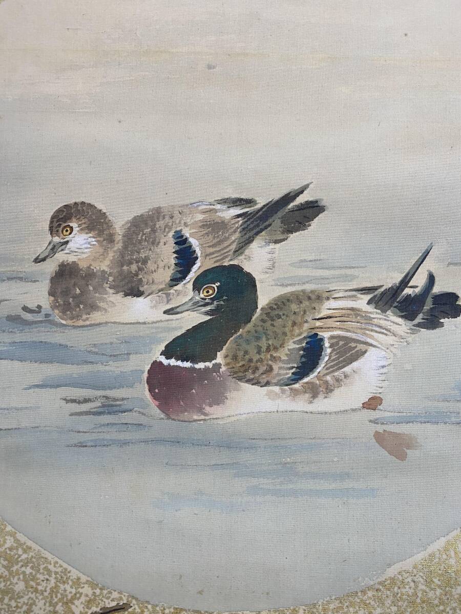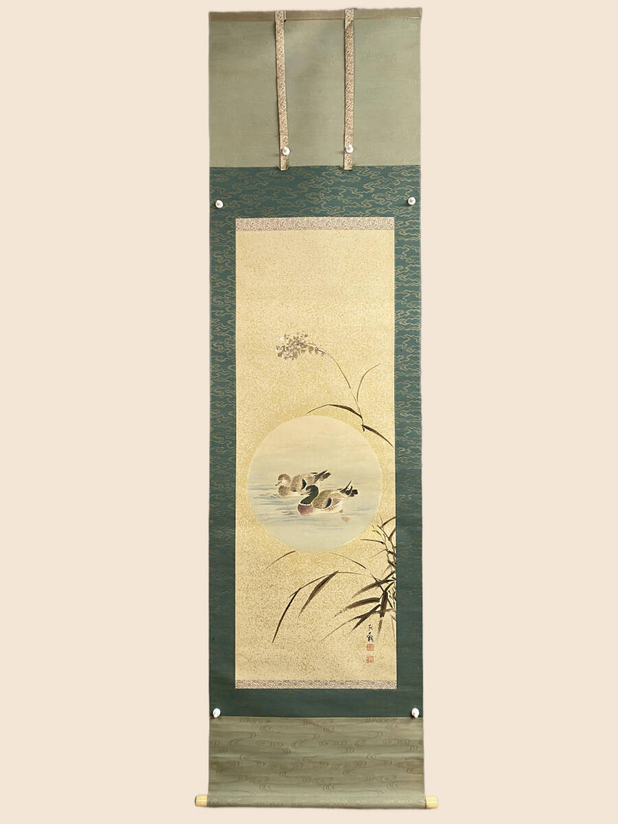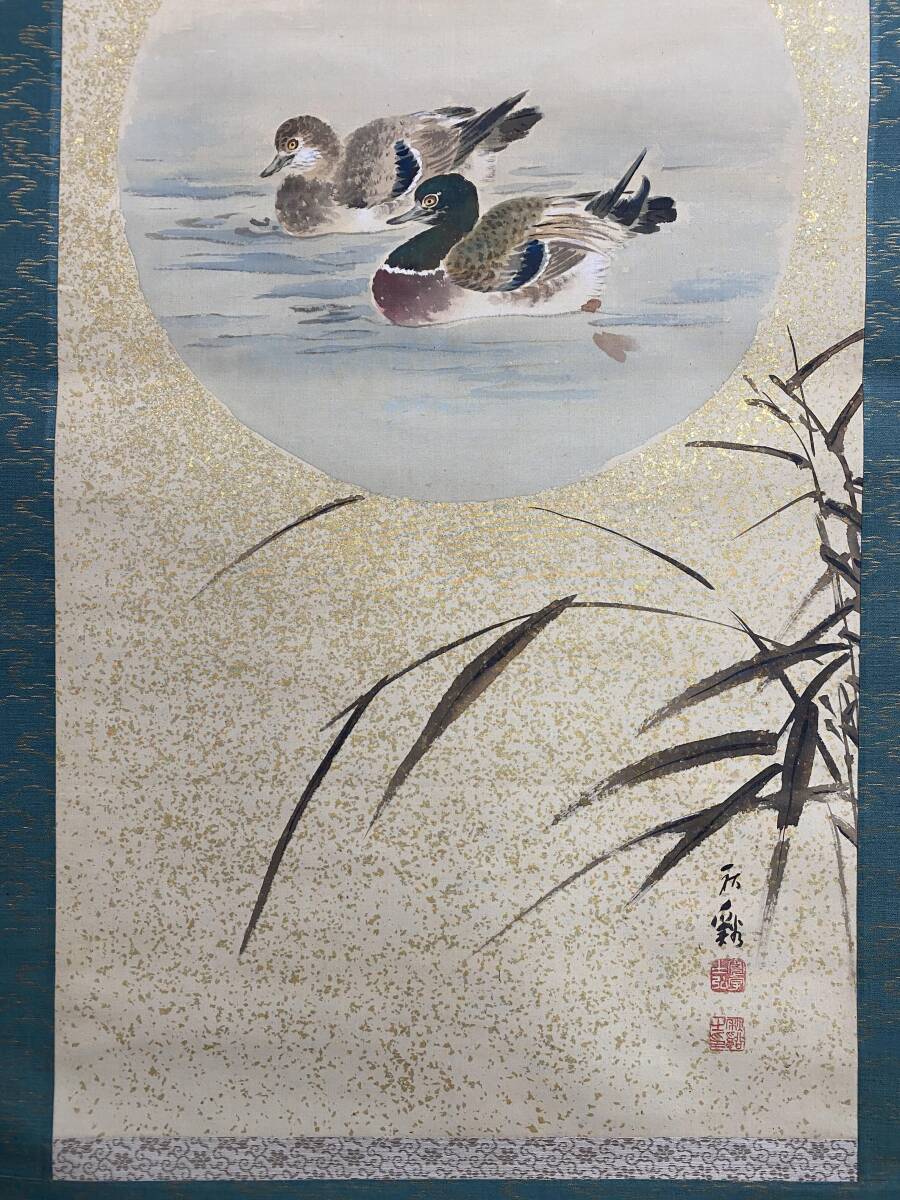 『模写』渡辺秋渓 渡辺秋谿『芦花双鴨』絹本 共箱 金泥 花鳥図 四条派 久保田米僊に師事 京都府立画学校教授 掛軸 璟蔵25090711