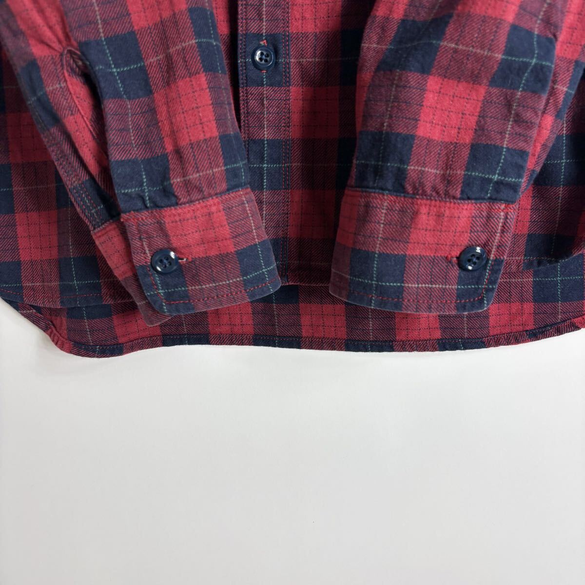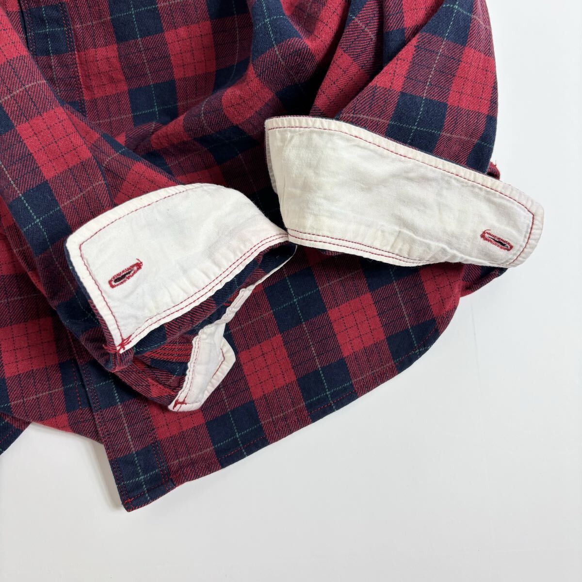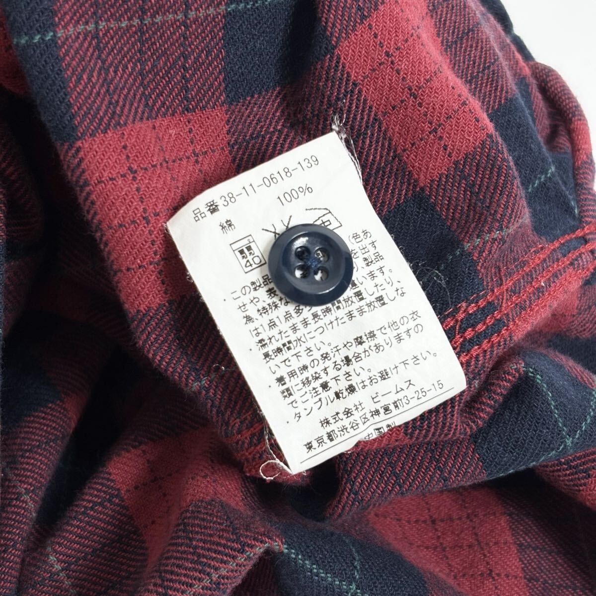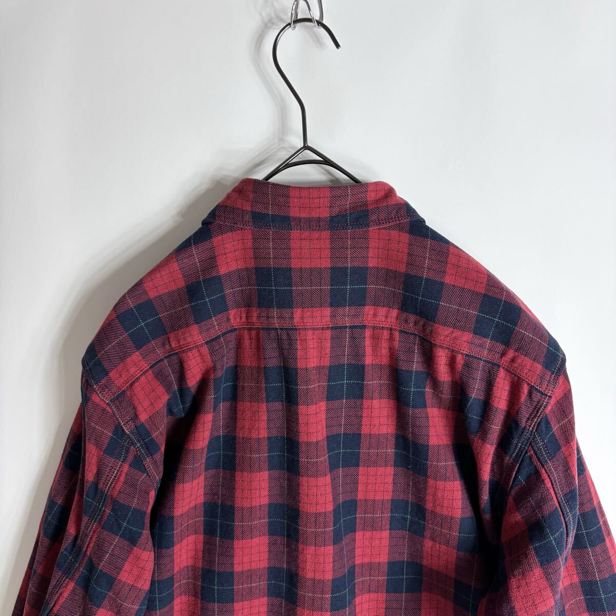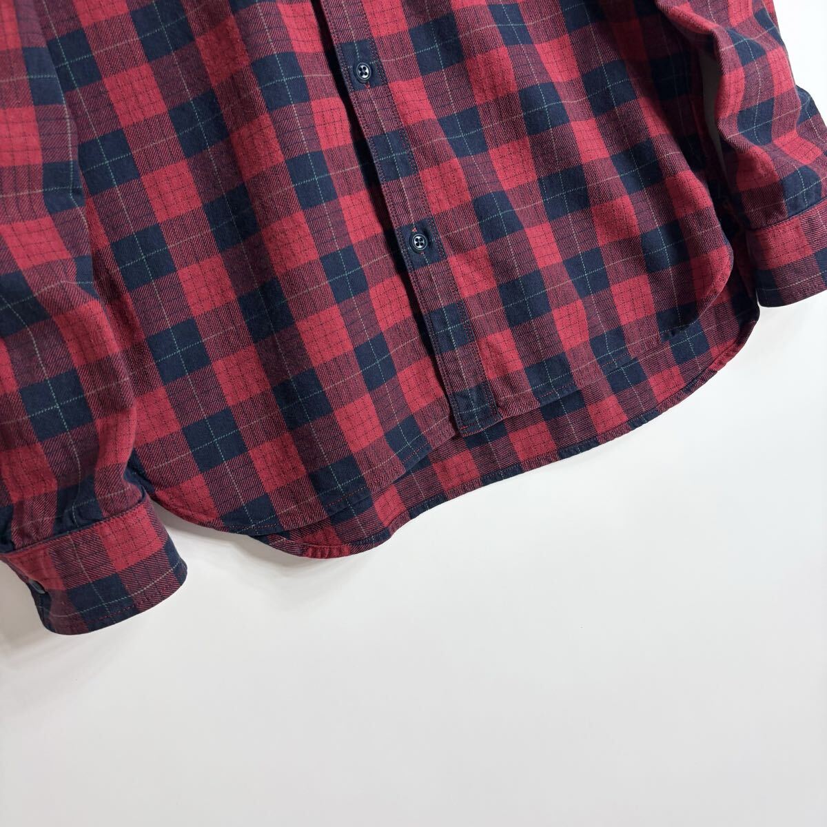 BEAMS PLUS ビームスプラス ワークシャツ チェック柄 コットン 山ポケ 3針ステッチ レッド × ネイビー size L