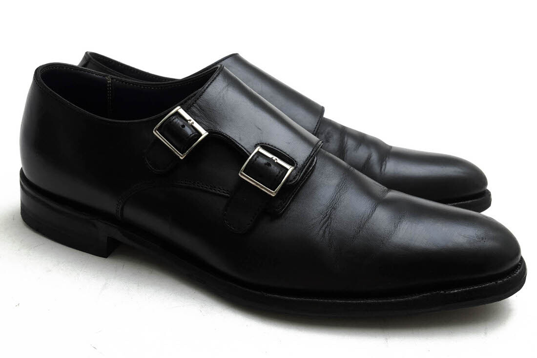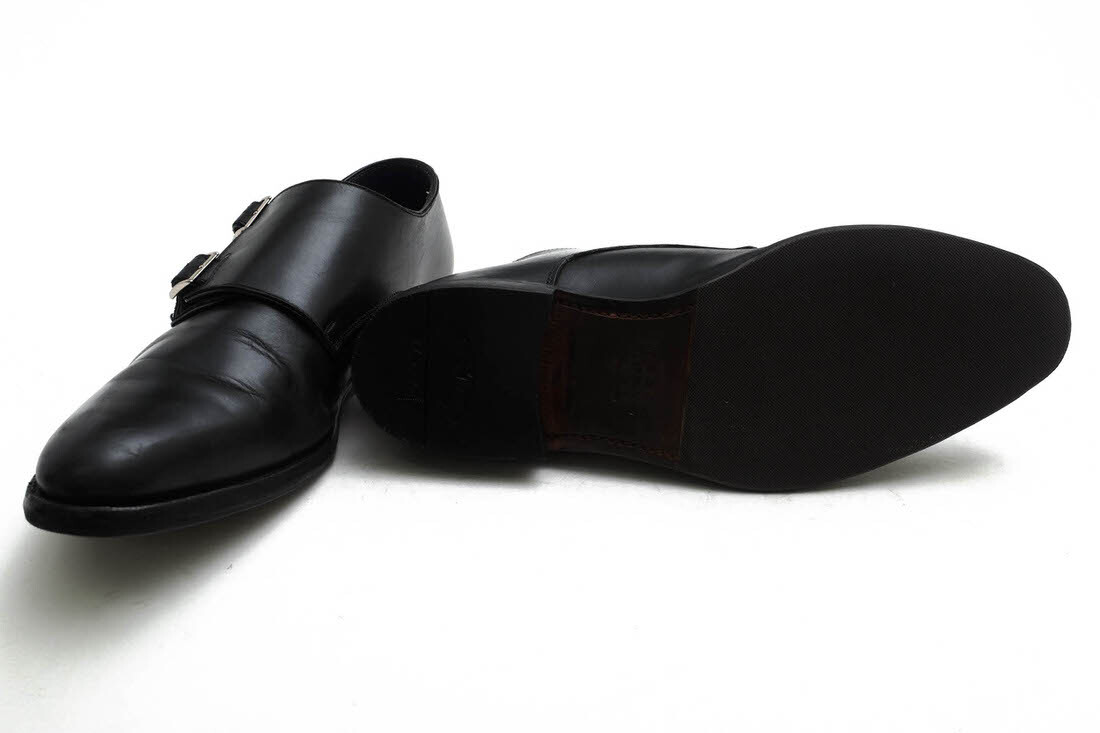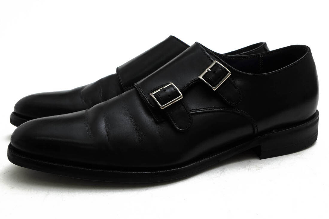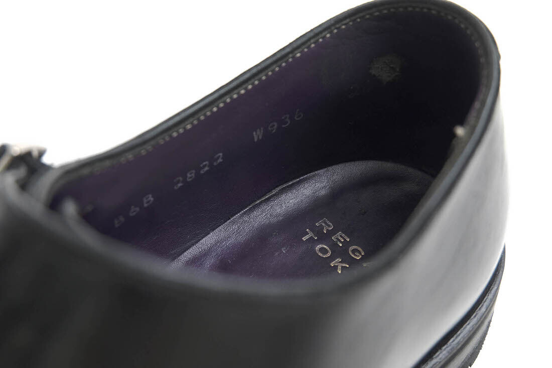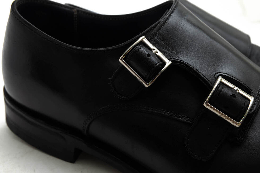 上質な艶感のあるカーフレザーを使用し、細身のラウンドプレーントゥに仕上げたダブルモンクストラップシューズ。甲部分に開けられた穴を通して締める独立したストラップが特徴的な作り。アウトソールは耐久性に優れたシングルレザーソールを採用。グッドイヤーウェルト製法による頑丈な造りは、長時間の使用にも耐え、履き込むほどに足に馴染み、快適な履き心地を提供します。 |