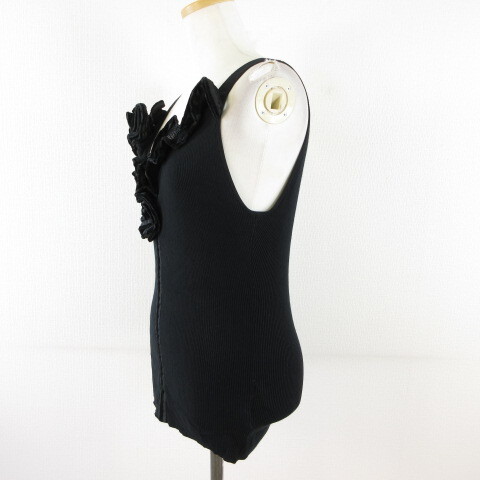 エポカ EPOCA ニットタンクトップ リブ フリル 黒 40 *T310 レディース