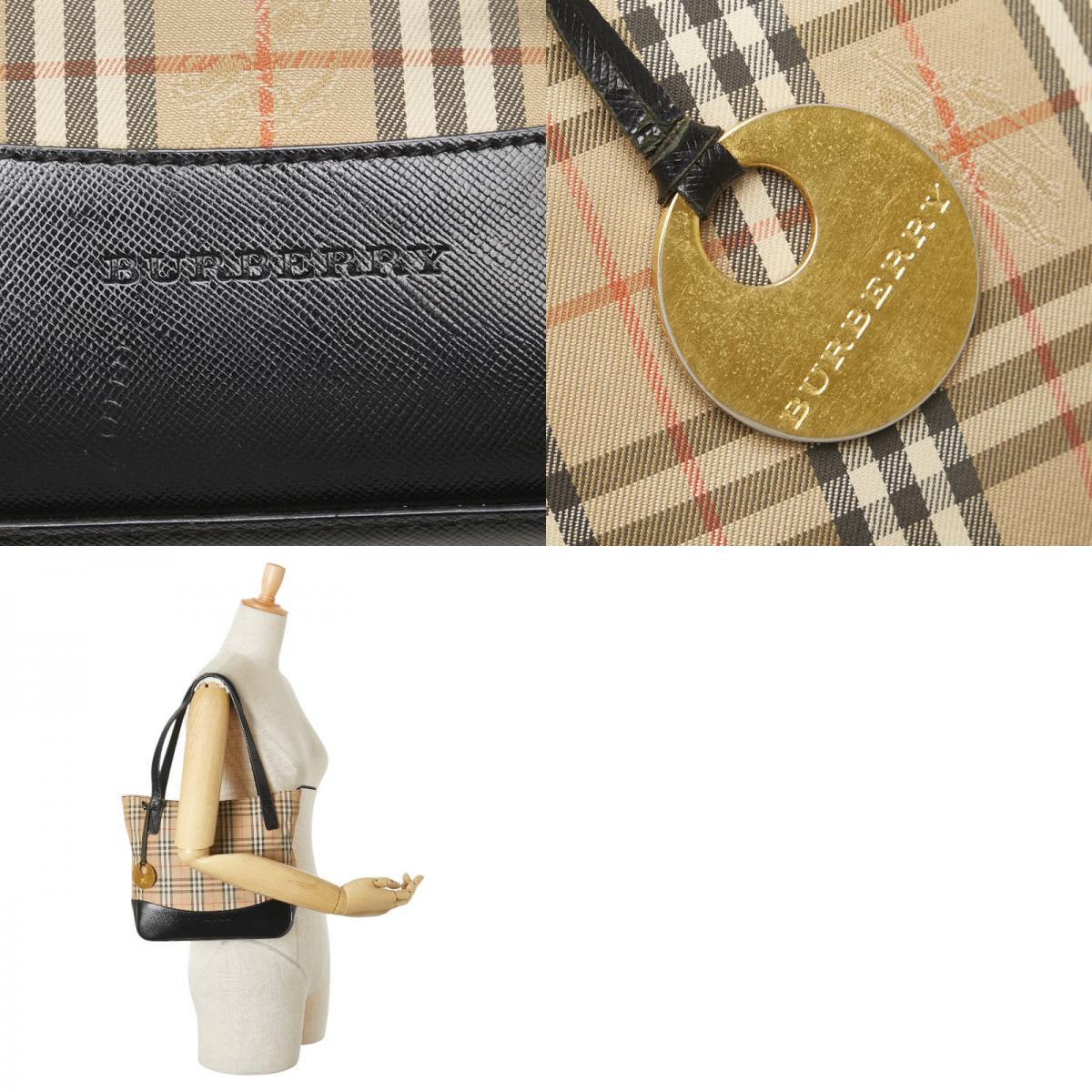 バーバリー ノバチェック シャドーホース ハンドバッグ ベージュ マルチカラー キャンバス レザー レディース BURBERRY 【中古】