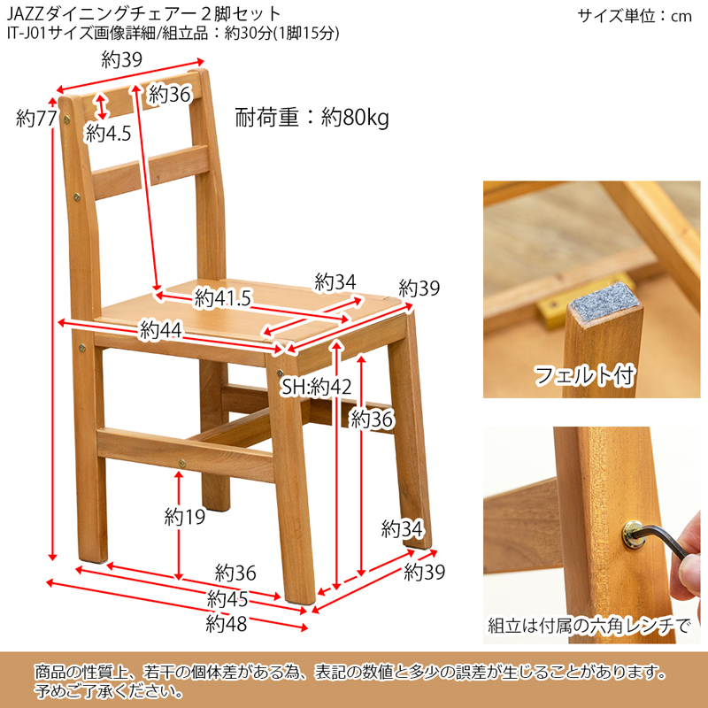 | 商品説明 | 組立品(1脚15分) 工具付属 お部屋を優しいイメージに仕上げてくれるマホガニー材のダイニングチェアー2脚セット! お手頃価格で買い替えや買い足しにもおすすめです。 シンプルでスッキリした細身のデザインのダイニングチェアー2脚セット。 マホガニー材を使用したことでお部屋に穏やかなぬくもりをプラスしてくれます。 お手頃価格で買い替えや買い足しにも最適です。 ※脚部にはフェルト付。座面にはクッションが付属しません。 |