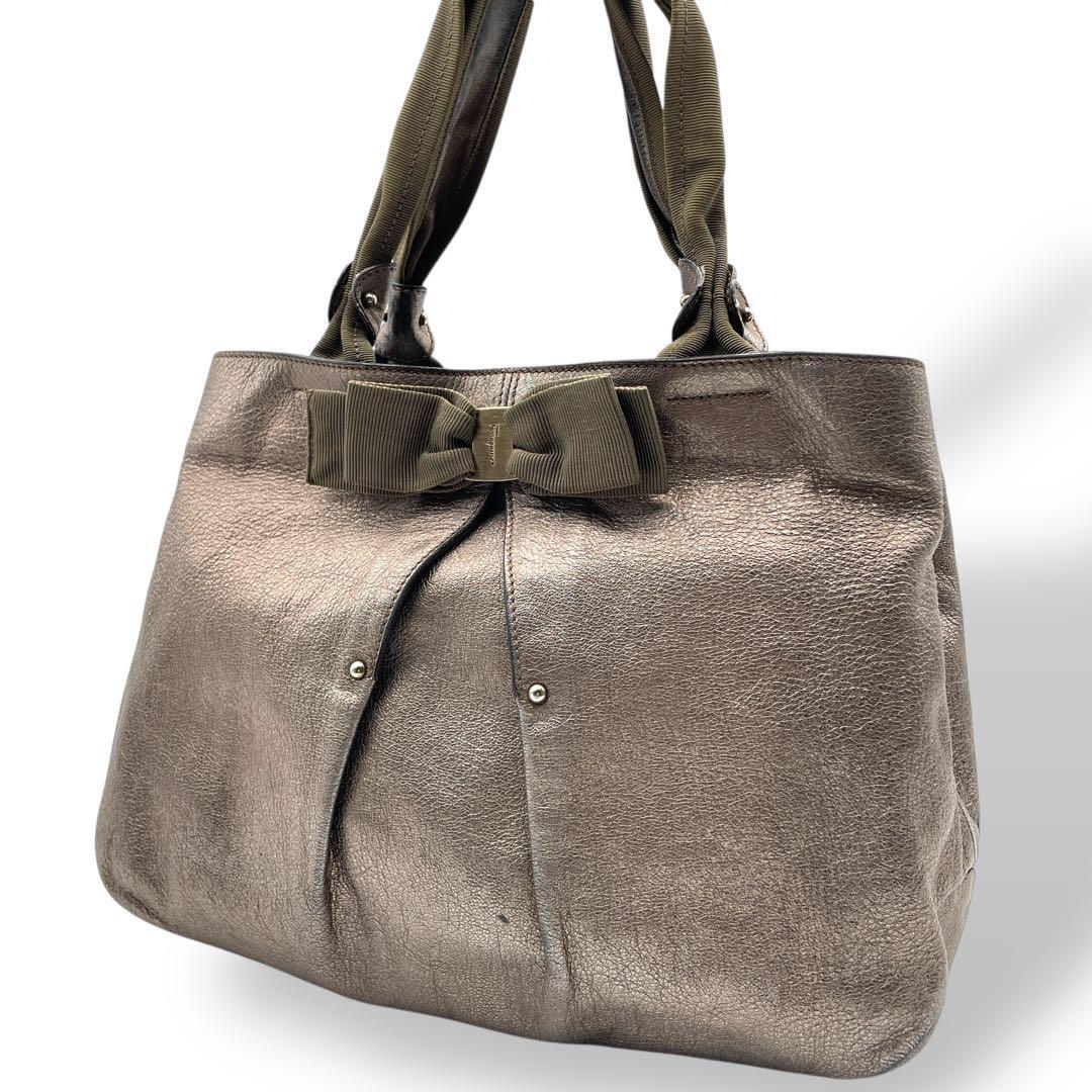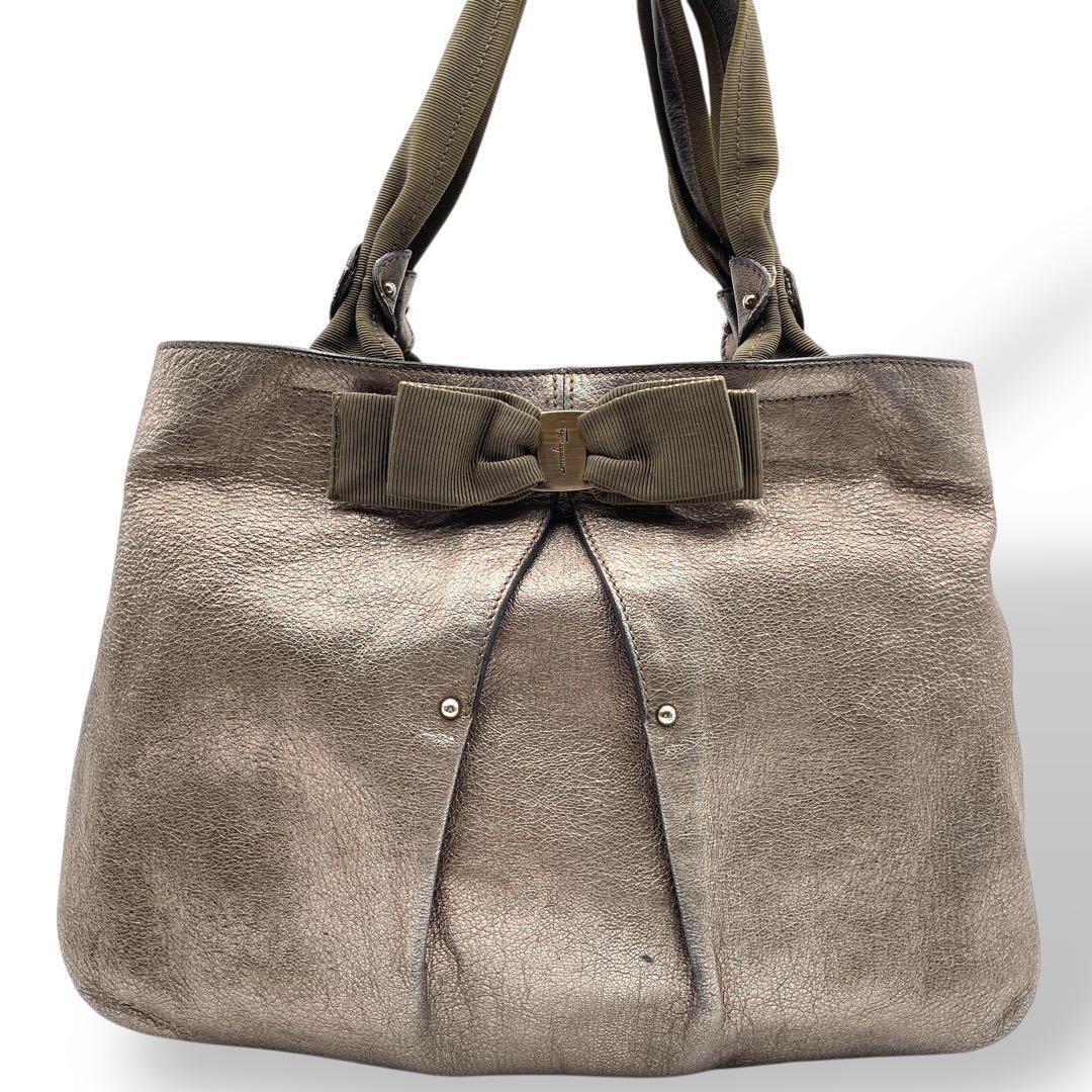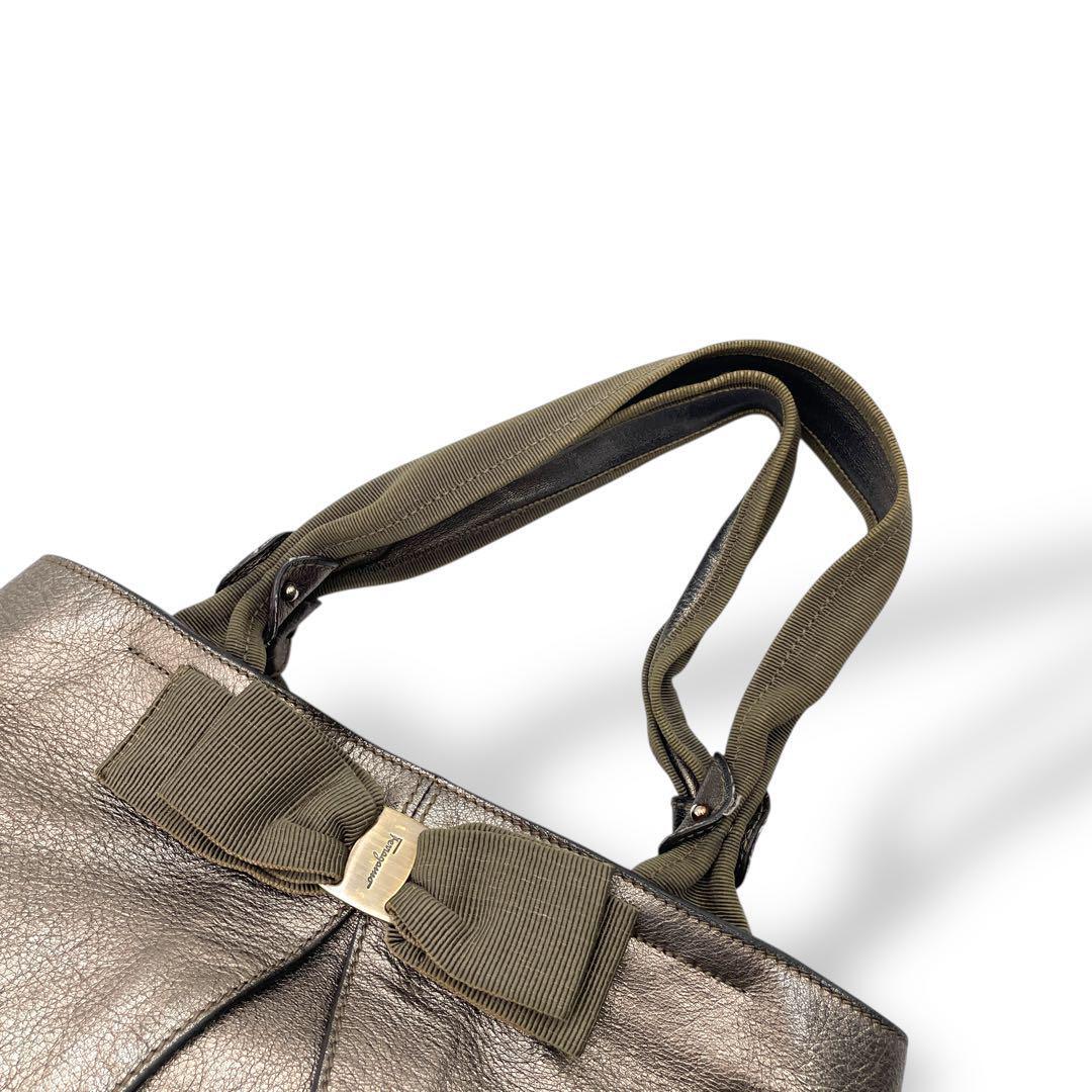 Ferragamo トートバッグ レザー ゴールド ヴァラリボン
