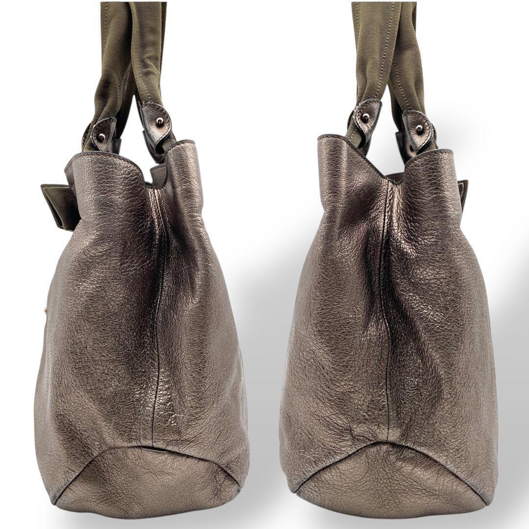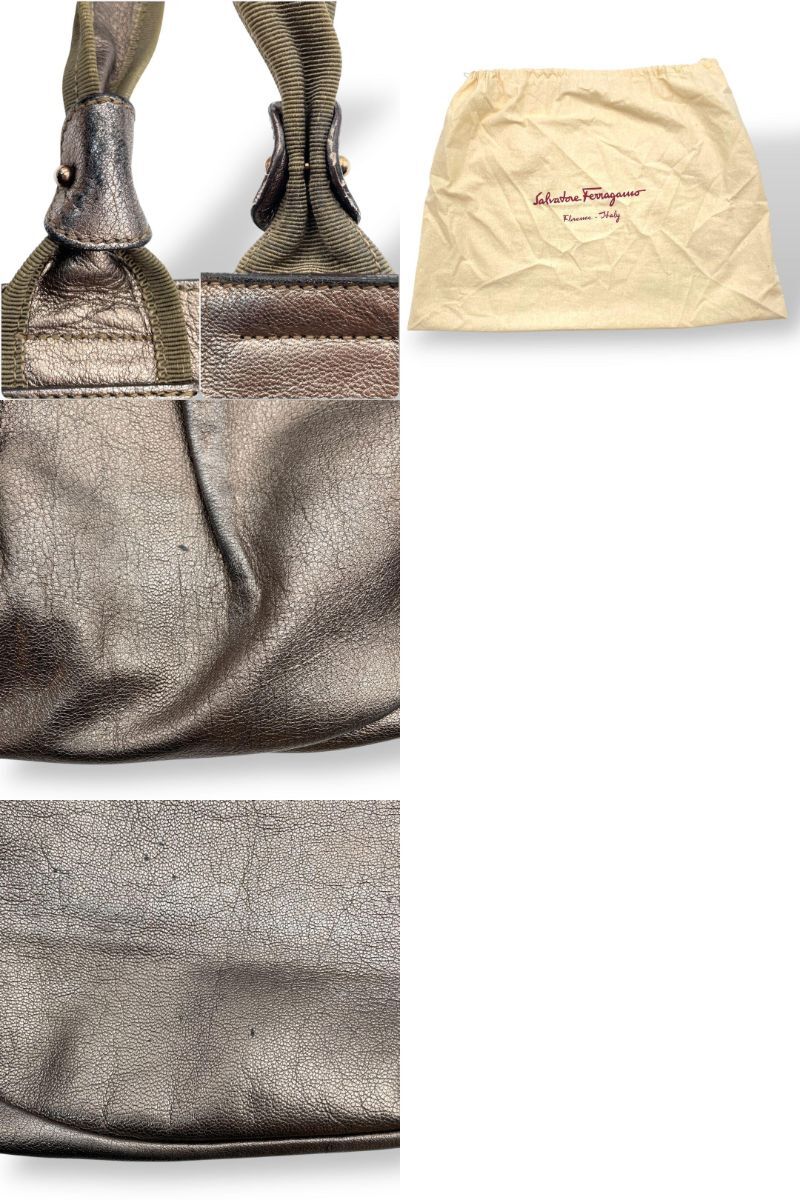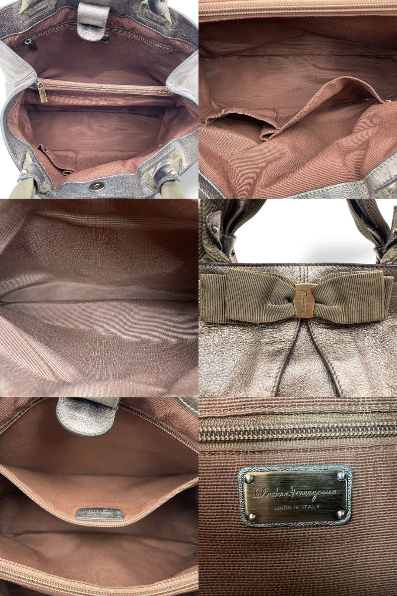 Ferragamo トートバッグ レザー ゴールド ヴァラリボン