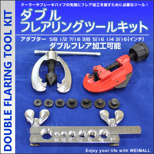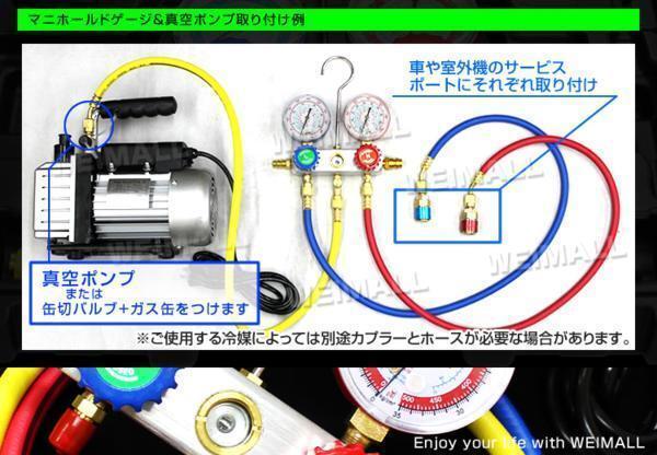 マニホールドゲージ 【仕様】 対応冷媒 R134a R12 R22 R502 真空ポンプ 【仕様】 ローター方式:シングルステージ 到達真空度:75ミクロン 排気速度:30l/min(50Hz) 36l/min(60Hz) 電源:AC100V 50Hz/60Hz 消費電力:120W 回転数:1440rpm(50Hz) 1720rpm(60Hz) 吸気口径:1/4フレア(UNF7/16-20) サイズ:110W×250D×235H 重量:約6kg 逆流防止:あり オイル封入量:160ml フレアリングツール 【仕様】 ・パイプ径:Φ1/4(6.3mm)、5/16(7.9mm)、3/8(9.5mm) ・曲げ角度:0~180° ・全長:約245mm ・材質:アルミ チューブベンダー 【仕様】 ・プレス ・ホルダー ・チュービングカッター ・アダプター:5/8、1/2、7/16、3/8、5/16、1/4、3/16(インチ) 【セット内容】 ○エアコンガスチャージ 2バルブゲージ付マニホールド(取付用フック付)×1 チャージングホース青赤黄(約900mm)×3 R134a用 高圧用クイックカプラー ×1 R134a用 低圧用クイックカプラー ×1 アダプター ×1 専用缶切りバルブ付 専用ケース付 日本語取扱説明書 ○電動真空ポンプ 本体 ×1 真空ポンプオイル ×1 英文取扱説明書 ○フレアリングツール プレス ホルダー チュービングカッターアダプター×7種類 ○チューブベンダー プレス ホルダー チュービングカッター アダプター×5/8、1/2、7/16、3/8、5/16、1/4、3/16(インチ) ●入荷時期により写真と実物(色の変更など)は多少異なる場合がございます。 あらかじめご了承下さい。 ●もちろん新品未使用品です |