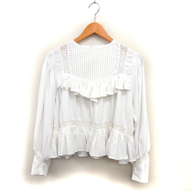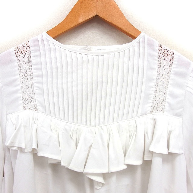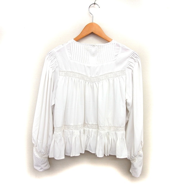 ミスティック mystic レース ピンタック ブラウス シャツ 透け感 ボリュームスリーブ 長袖 F 白 ホワイト /NT14 レディース
