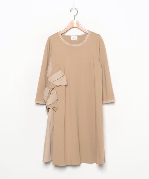 「LANVIN en Bleu」 7分袖ワンピース 38 ベージュ レディース