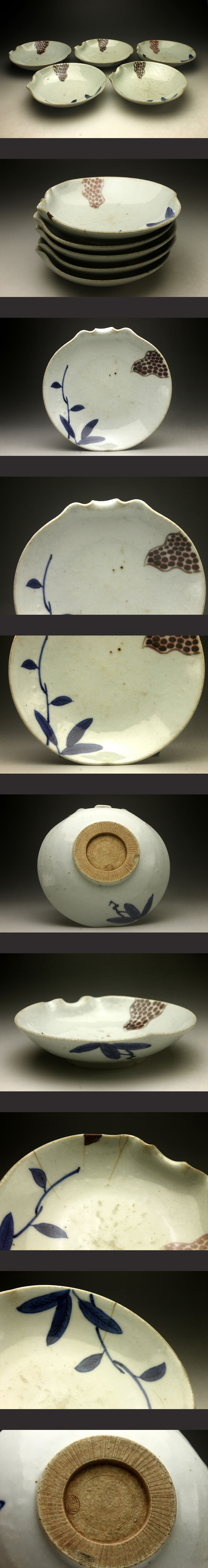 【余韻】 京焼 寶善銘 宝全 柘榴形 銘々皿 (5枚)★茶道具 時代物<同梱可>