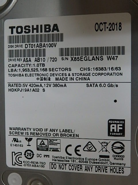 2018年製 シャープ Blu-ray/HDD 1.0TB/電通有り です。