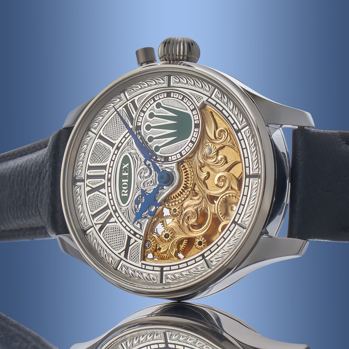 こちらの商品はRolexのムーブメント(懐中時計)に装飾を施し、ヨーロッパのアンティーク時計店が新たに製作したケース・文字盤・バンドを組み合わせた腕時計です。このエレガントな腕時計は懐中時計をアレンジして作られました。アンティーク時計店の専門家チームは、それぞれのムーブメントにアプローチする新しい方法を見つけ、このアンティーク時計に新しい命を吹き込みました。ヴィンテージスタイルとモダンスタイルの理想的な組み合わせです。最高の品質とアンティークを評価する人にとっては完璧な逸品です。
