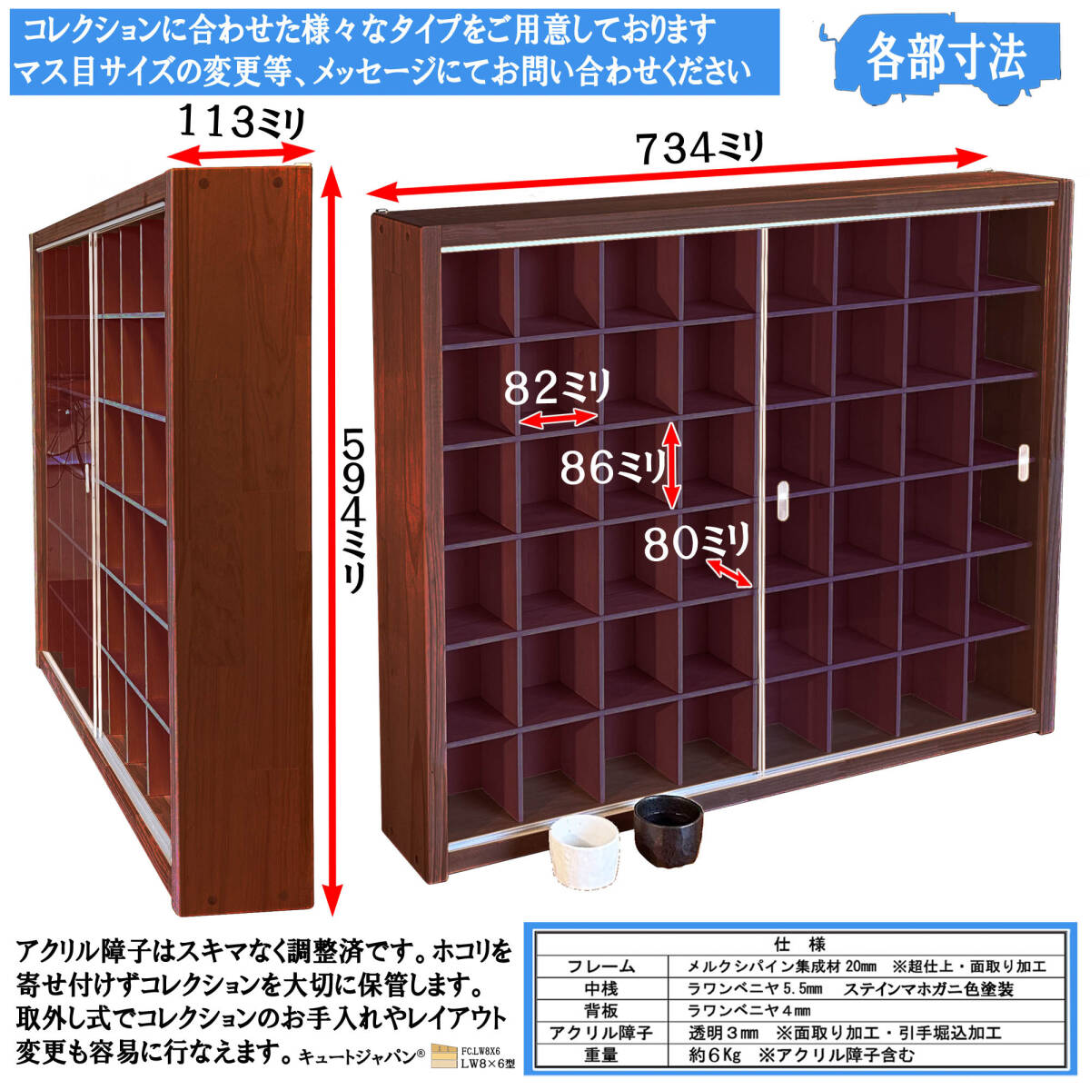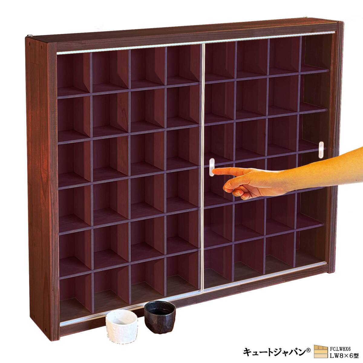 お猪口が48個収納可、コレクションを惹きたてるディスプレイケースです。