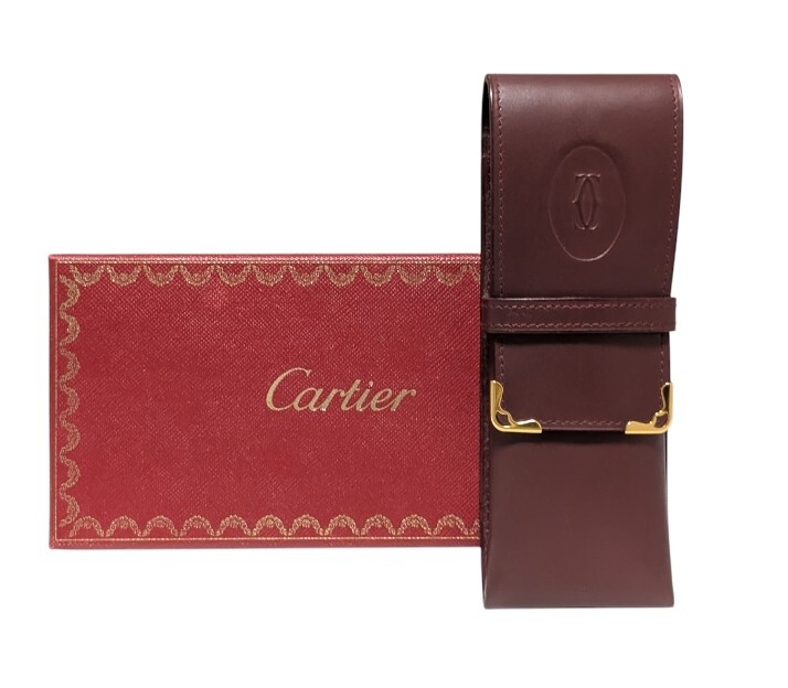 新品同様 カルティエ マスト ペンケース ボルドー レザー 2本差し 筆記具ケース 革製 男女兼用 Cartier 【中古】