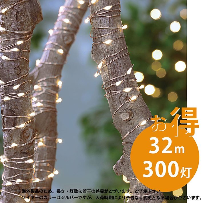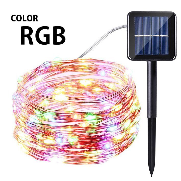【電気代0円】LED ソーラーライト 太陽電池 屋外 防水 照明 イルミネーション 32m 300灯 ワイヤーライト 7987676 RGB 新品 1円 スタート