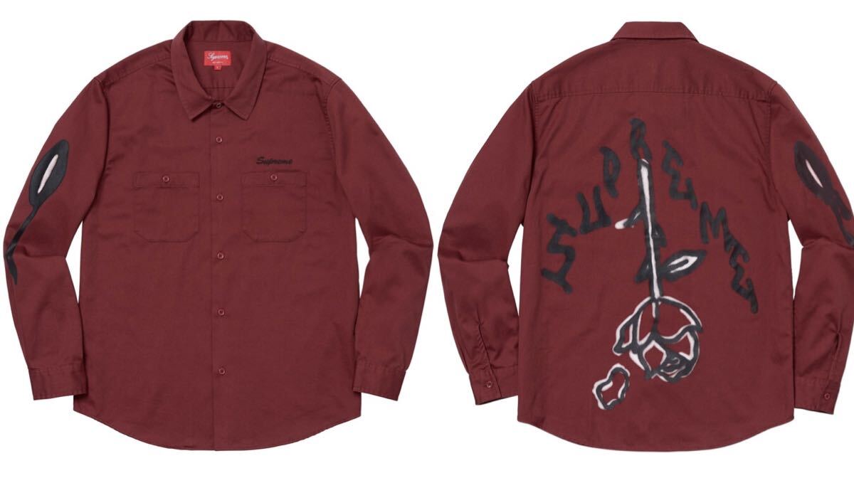 Dusty Red M 送料無料 国内正規品 18AW Supreme Rose L/S Work Shirt