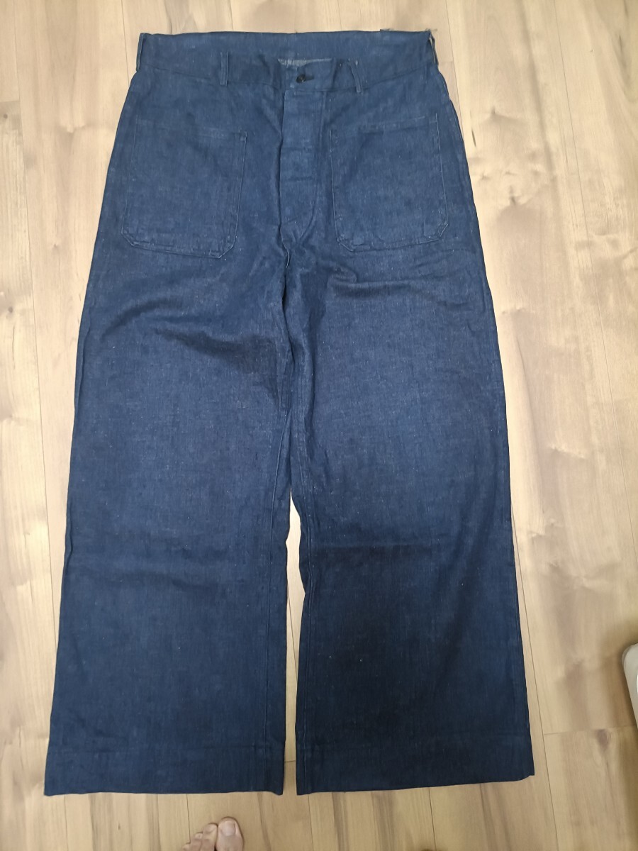 40s.50sのUSNavyのデニムパンツです。ほぼデッドストック状態!サイズも実寸3330ほどの超ゴールデンサイズです!近年物のセーラーパンツみたいにフレアになっておらずドカンとした感じで最高です!中々見つかりません!まだまだ色濃くこれからも楽しめると思います。探されていた方是非。ビンテージにご理解ある方のみ入札願います。ノークレームノーリターンでよろしくお願いします。評価が一桁の方、新規の方、評価が悪い方の入札はお断りしております。こちらから削除することもありますのでご理解よろしくお願いします。発送はたたんでレターパックプラスで行います。以上をご理解いただいた上でご入札よろしくお願いします。