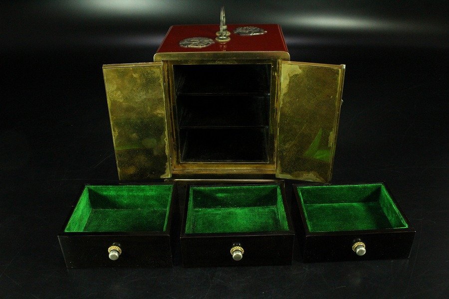 【金閣】大阪 尚美堂造 純銀飾 宝石箱 旧家蔵出 送料無料(LC805)
