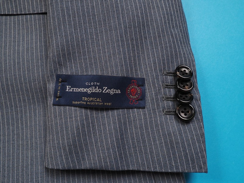 水牛釦、本切羽、AMFステッチ、ゼニアジャガード裏地、お台場仕立てなど、百貨店向けならではのオーダーメイド並みの最上級仕立てで仕上げられております。ファブリックはイタリアの最高級ファブリックメーカー、ゼニア社のウール100%生地を使用。エルメネジルド・ゼニアのトロピカルは、オーストラリア産のファインウールで作られた単糸をヨコ糸に、双糸をタテ糸に使用し、交互に交差することで織り上げる、「平織り」で織られているため、軽量で吸湿性が高く、生地にハリがあり丈夫で型崩れしにくい夏向き素材。清涼感のあるさらっとした肌触りにとても人気があり、また、扱いやすい服地のため、ゼニアは初めてという方におすすめしたい、クラシックな色柄を中心とした春夏の定番服地です。