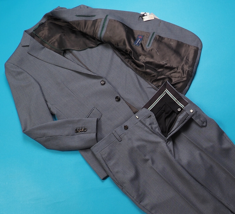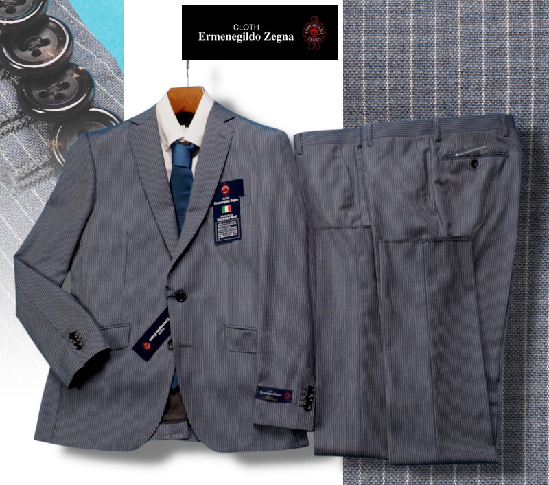 新品19.5万円 大手百貨店扱い 春夏『Ermenegildo Zegna ゼニア TROPICAL 伊製生地』ウール100% ストライプ ツーパンツスーツA4灰(H)1509672