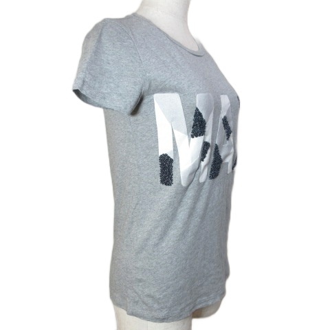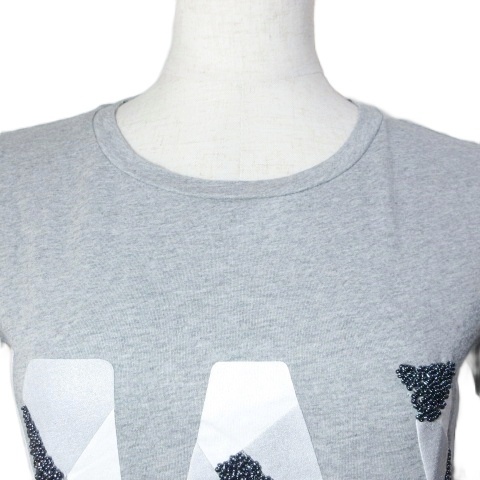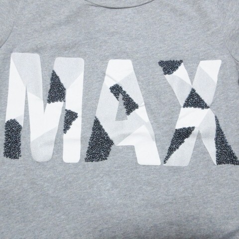 マックス&コー MAX&CO. 美品 カットソー Tシャツ 半袖 ビーズ ロゴ プリント XS グレー X レディース