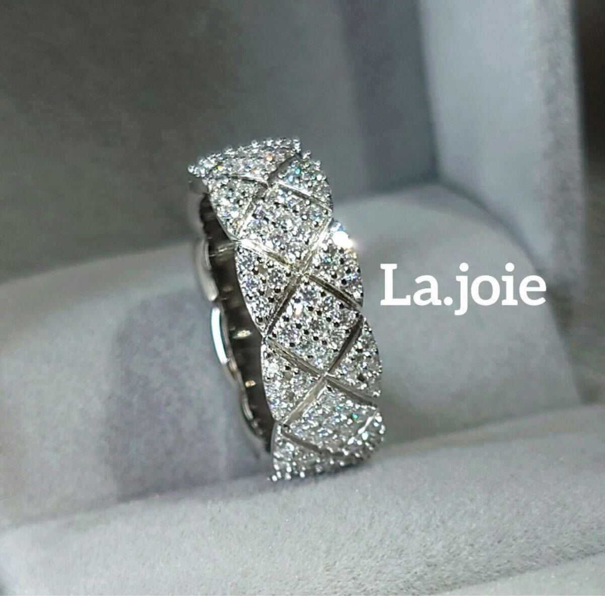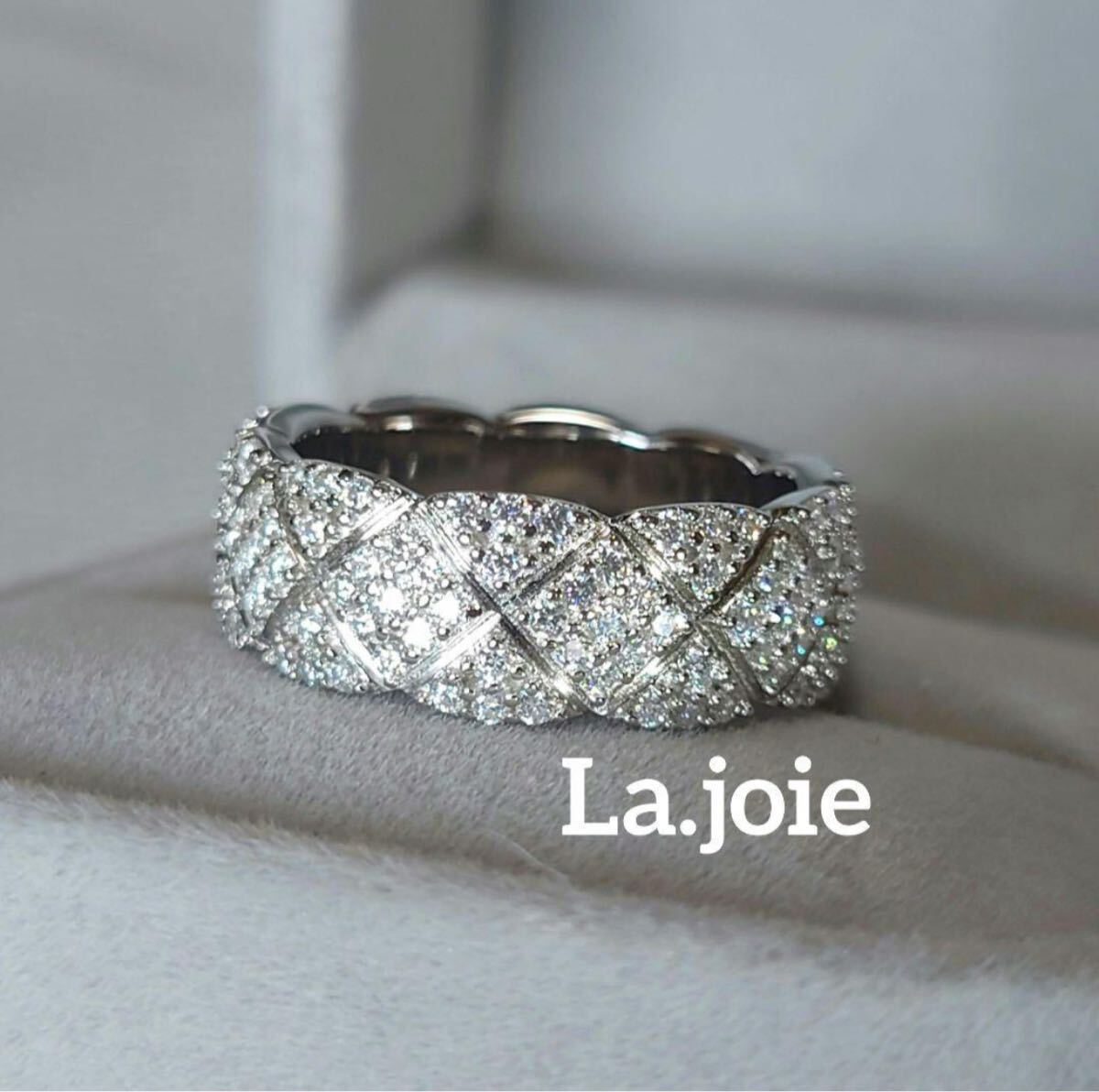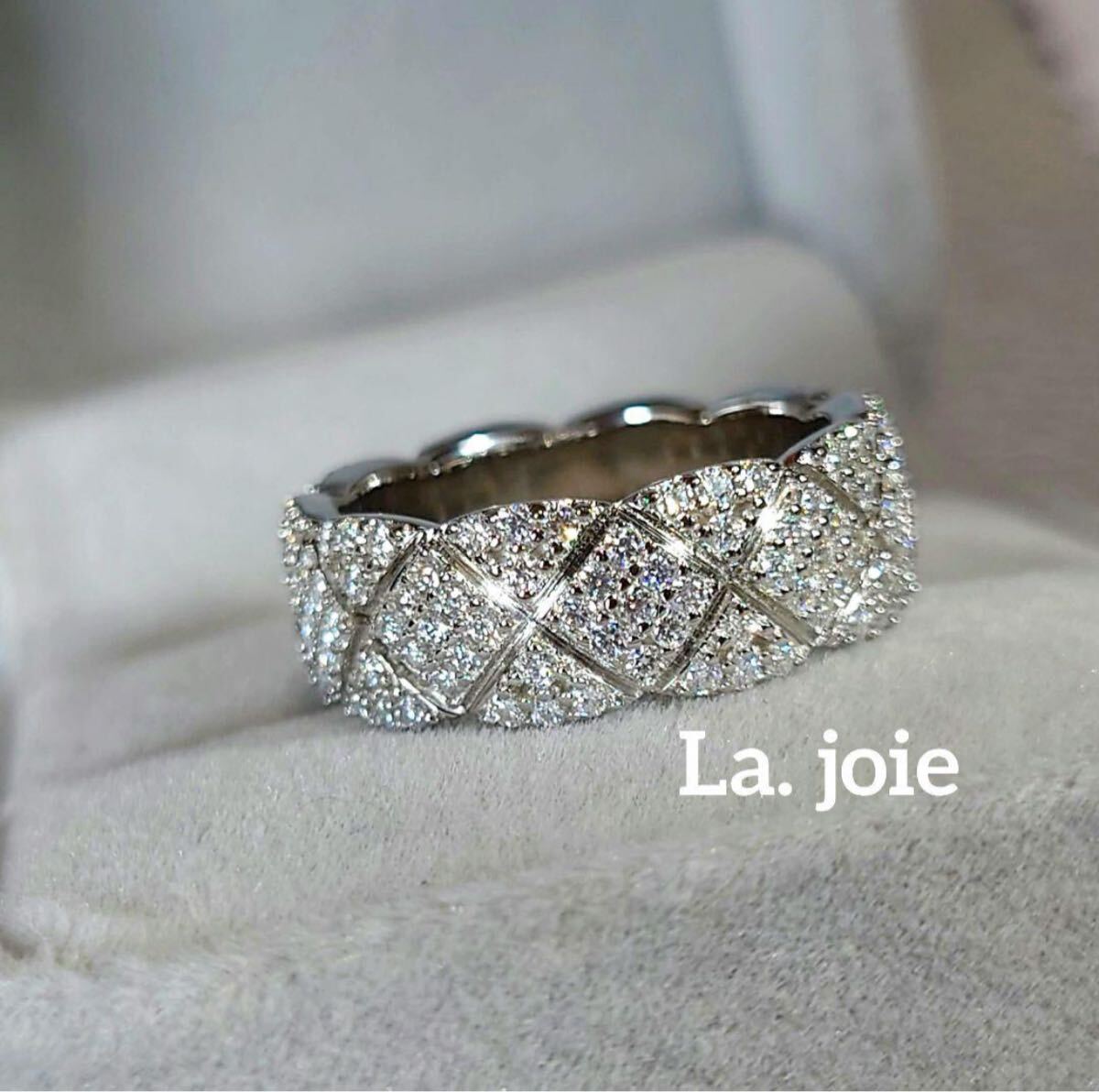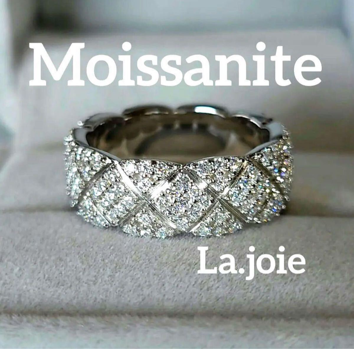 美しいモアサナイトを丁寧に敷き詰めた繊細な輝きが指元で存在感を発揮します