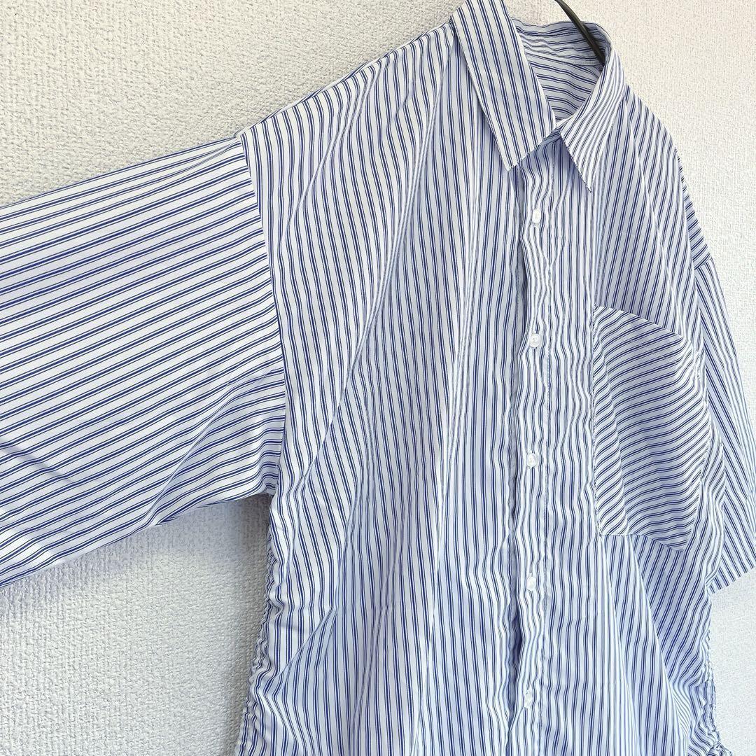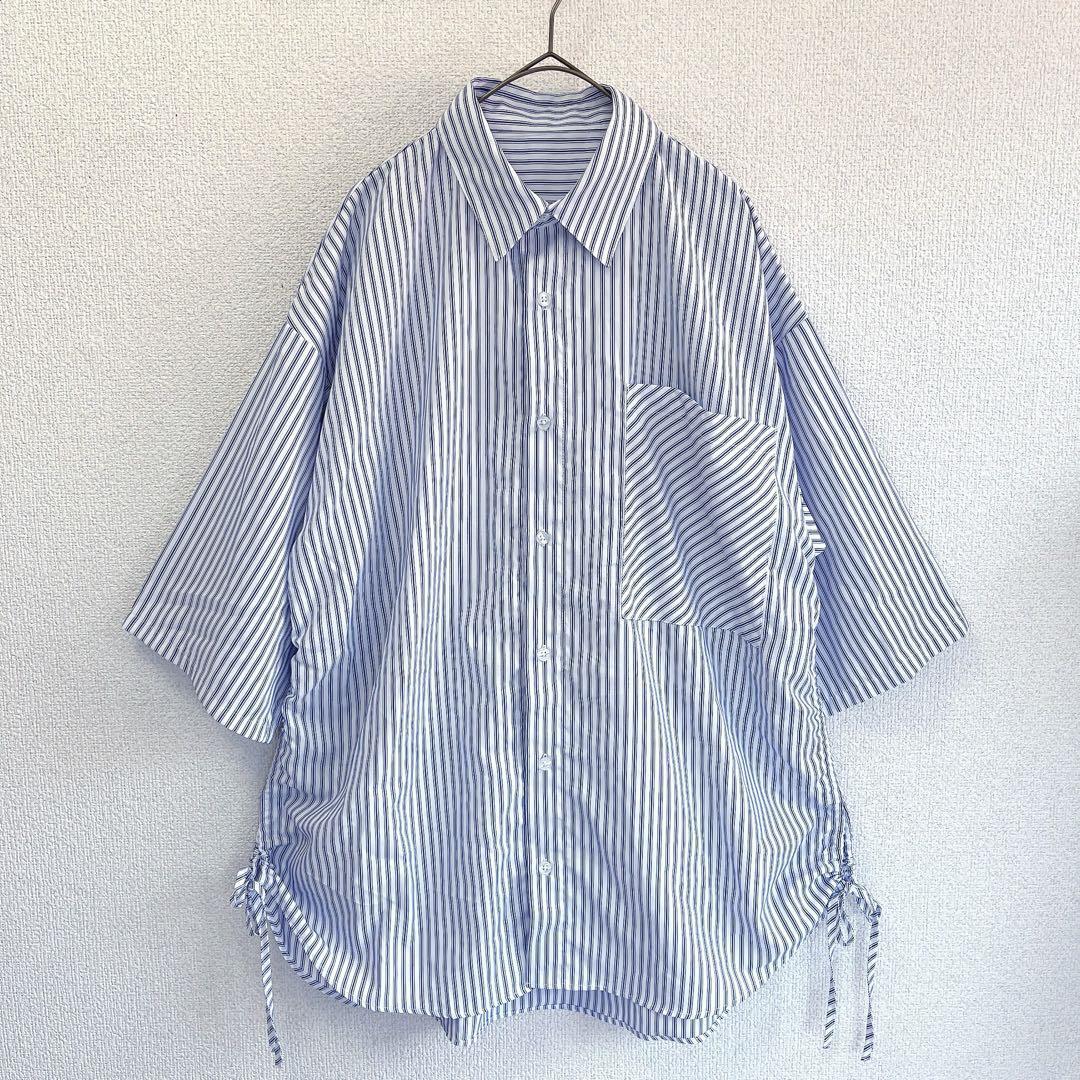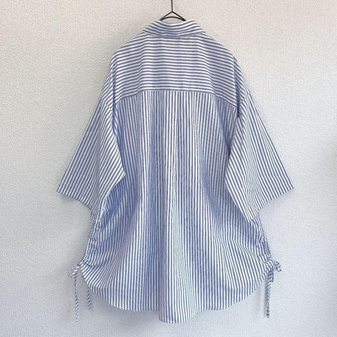 ゆったりシルエットとサイドのシャーリングがおしゃれなストライプシャツです♪