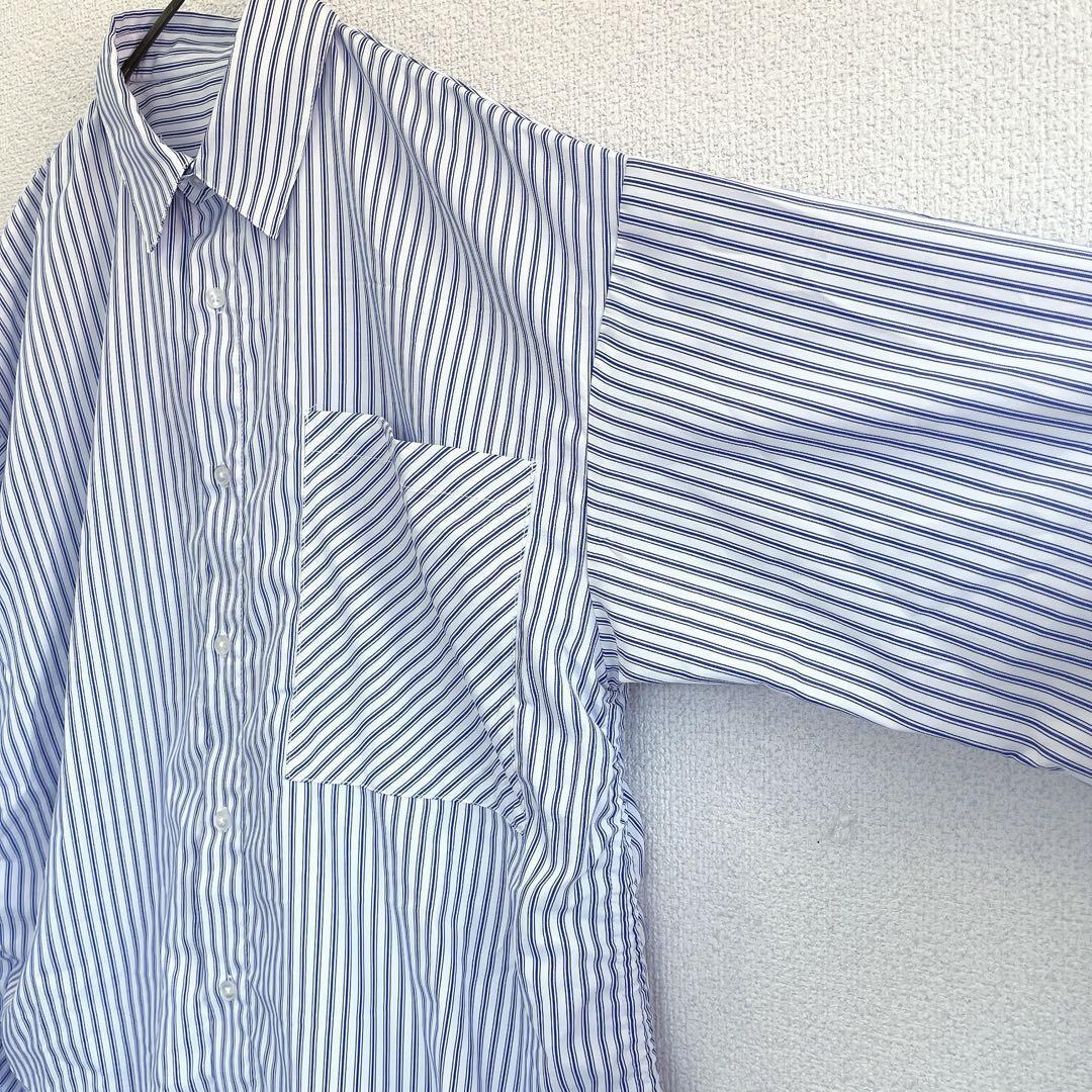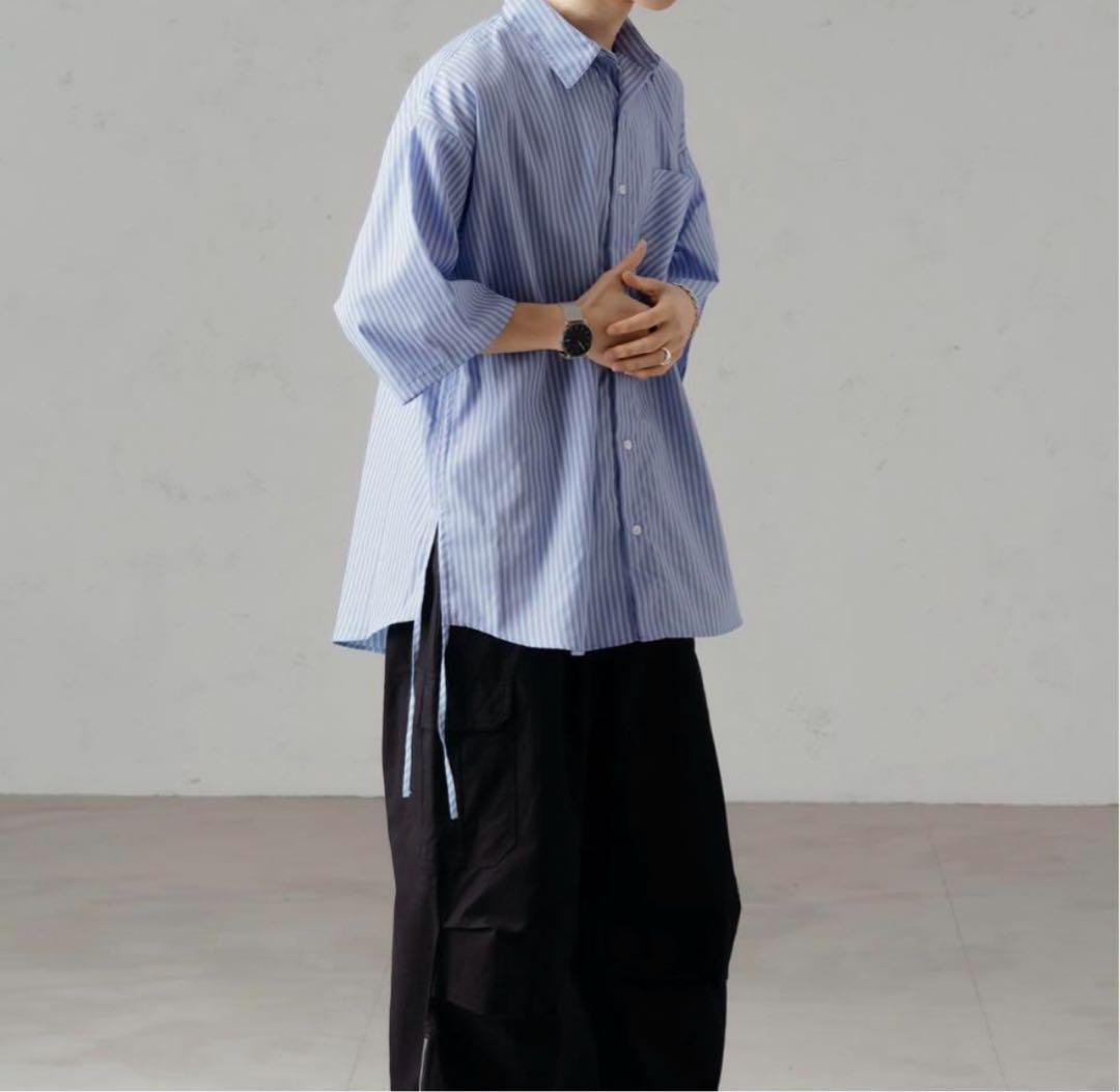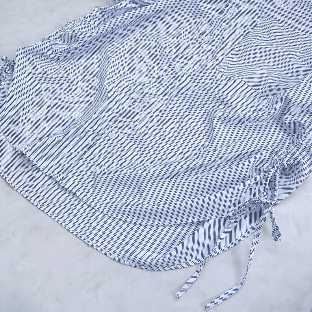 ゆったりシルエットとサイドのシャーリングがおしゃれなストライプシャツです♪