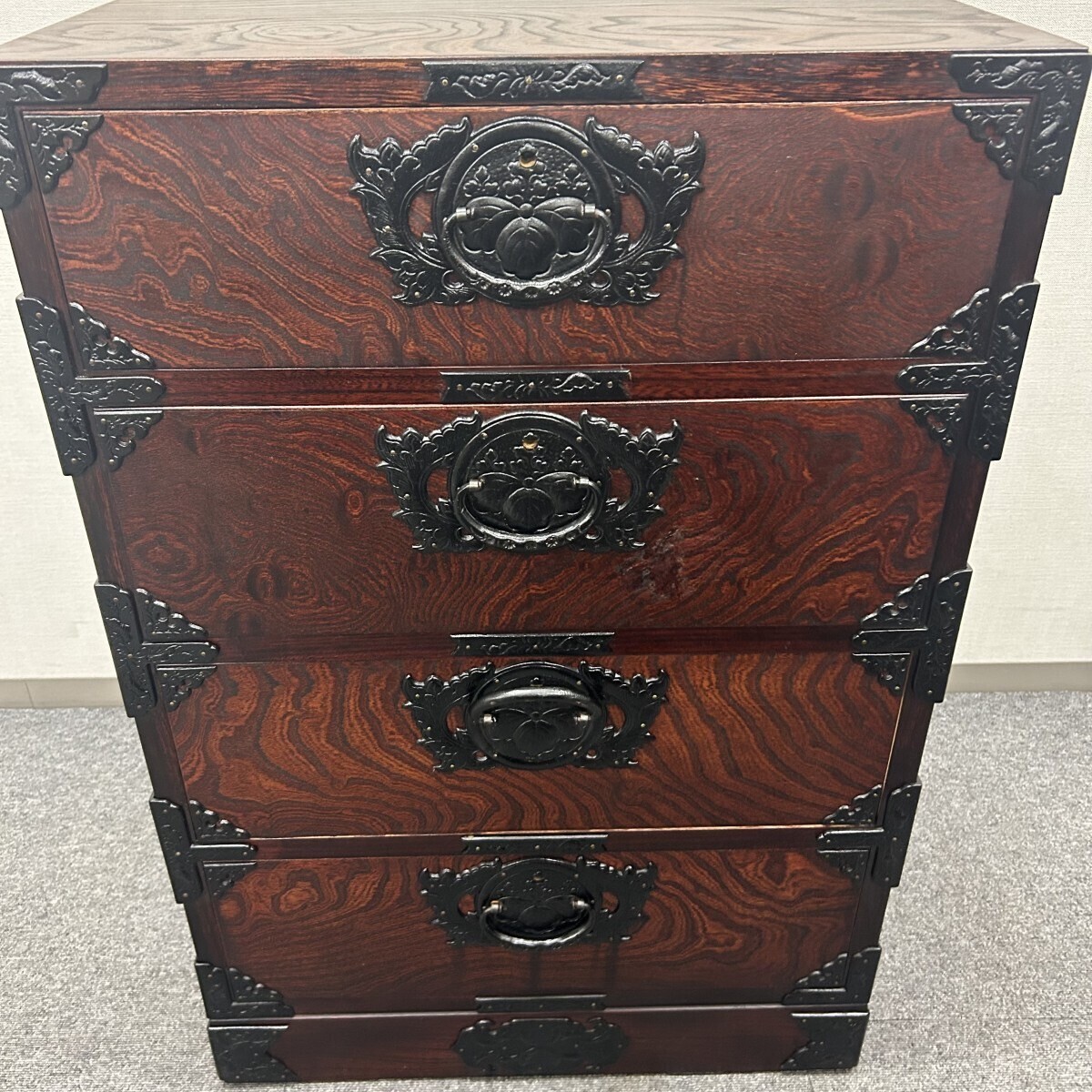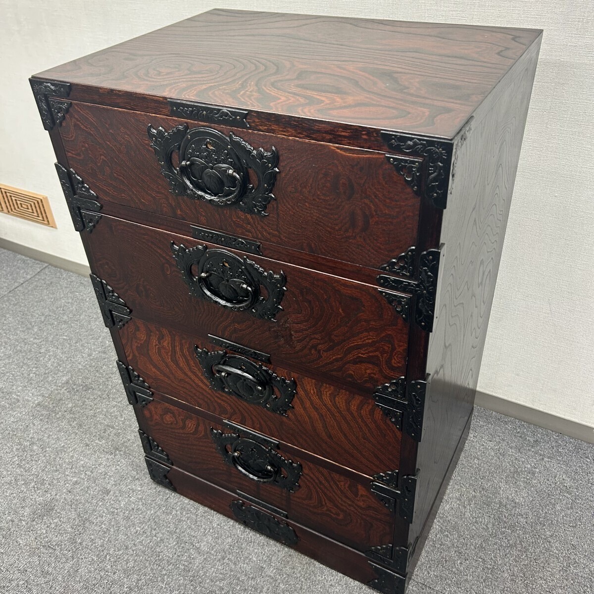 岩谷堂箪笥 4段 伝統工芸品 欅材 和家具 民藝 金具 タンス 幅61×奥行45.5× 高さ91cm チェスト インテリア