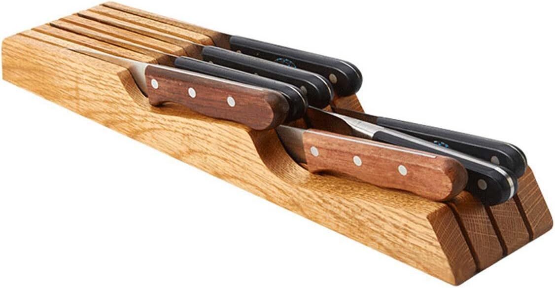 ◎1~3日以内での発送完了を目指しております。素材は高品質のアメリカオーク材を用いた吸湿性に優れた包丁スタンドです。自然の木の色に近いカラーリングで、キッチンに馴染みやすいデザインに仕上げています。ただし、自然素材のため色味には多少の個体差がございます。お手持ちの刃物をスマートに収納でき、必要な時にすぐ取り出せる実用性を持ち合わせています。