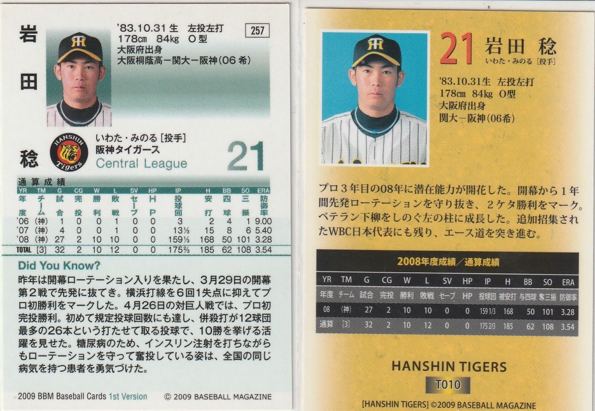 ●2009BBM 1st/阪神 【岩田 稔】通常版2種セット No.257&T010 R