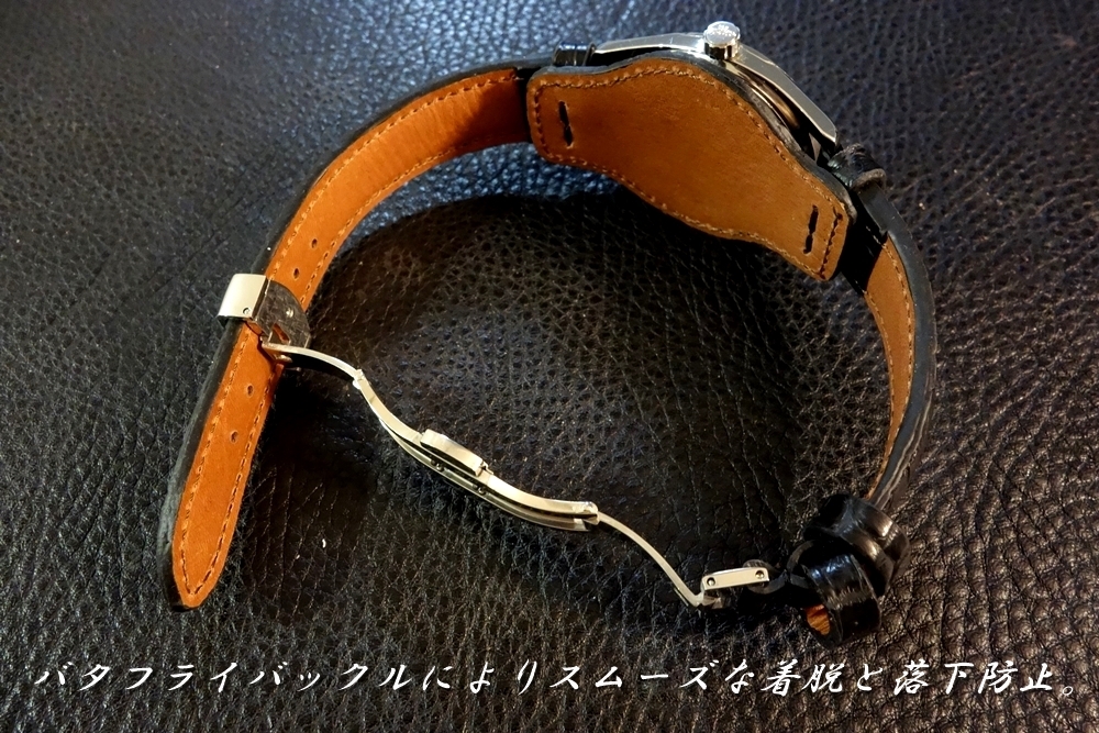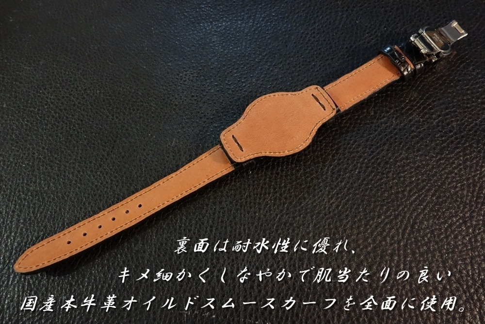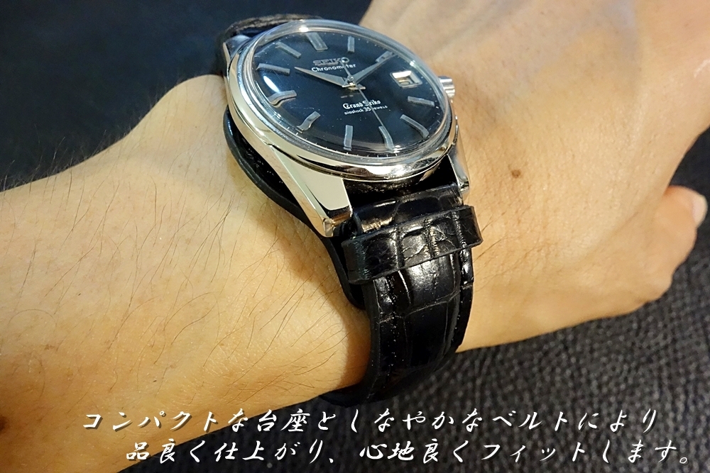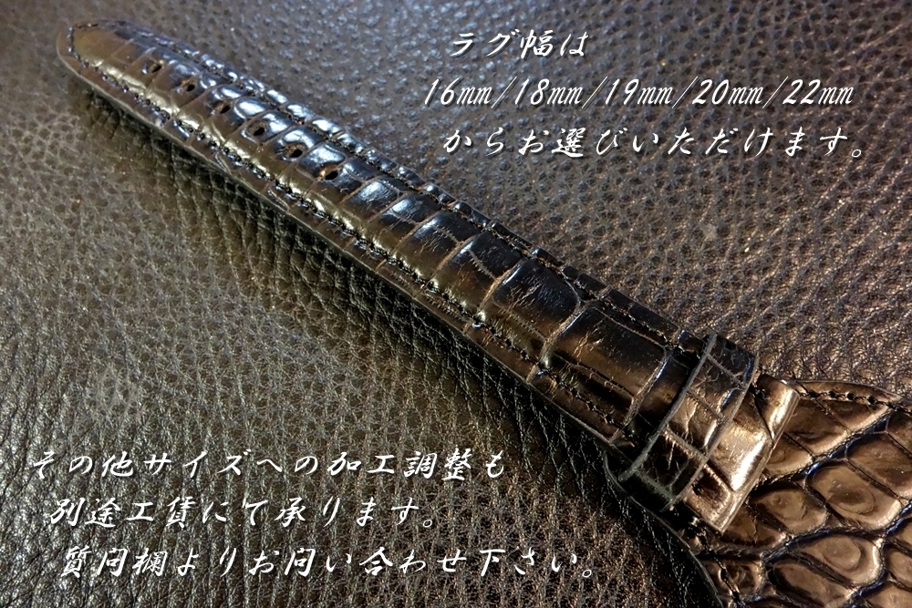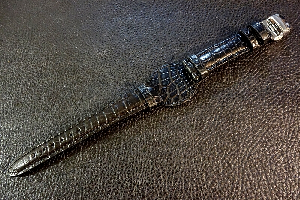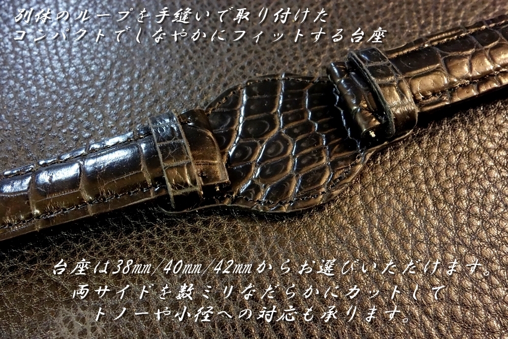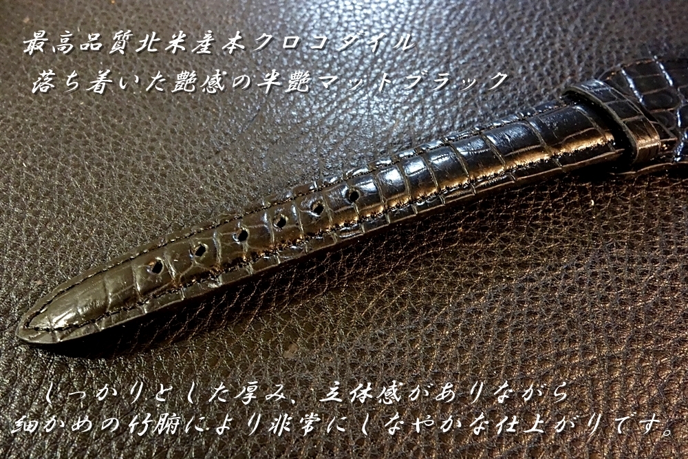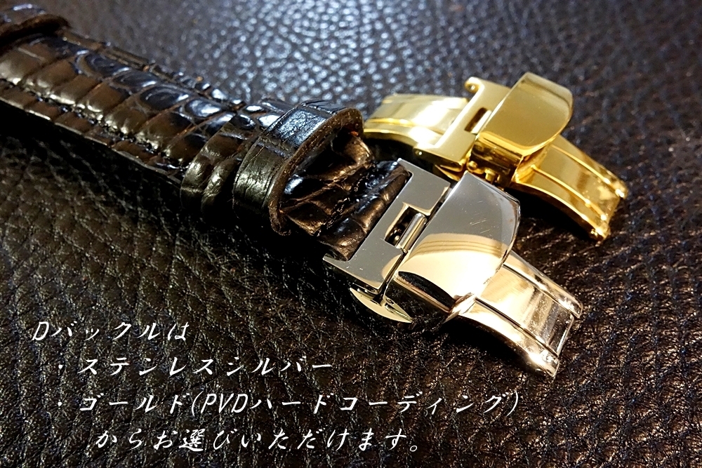 ◆台座付 D-Buckle Vintage Belt◆北米産クロコダイル カスタムオーダー(ラグ幅/台座サイズ/バックルカラー) BLACK 日本製 受注生産(納期10日前後) |