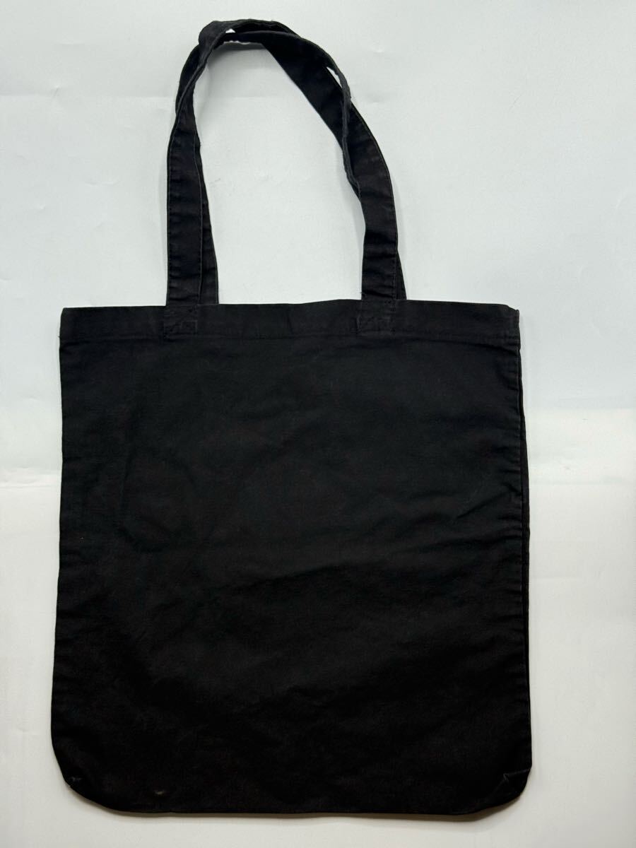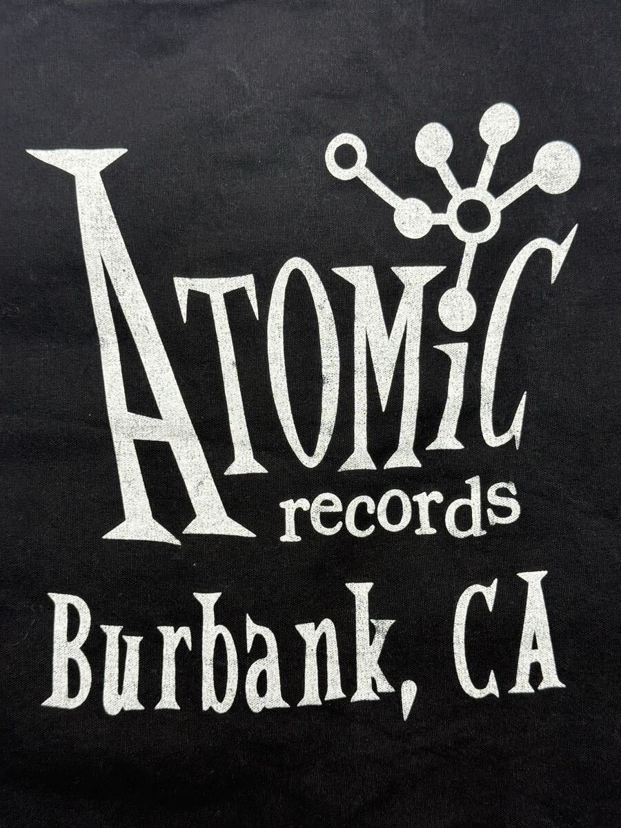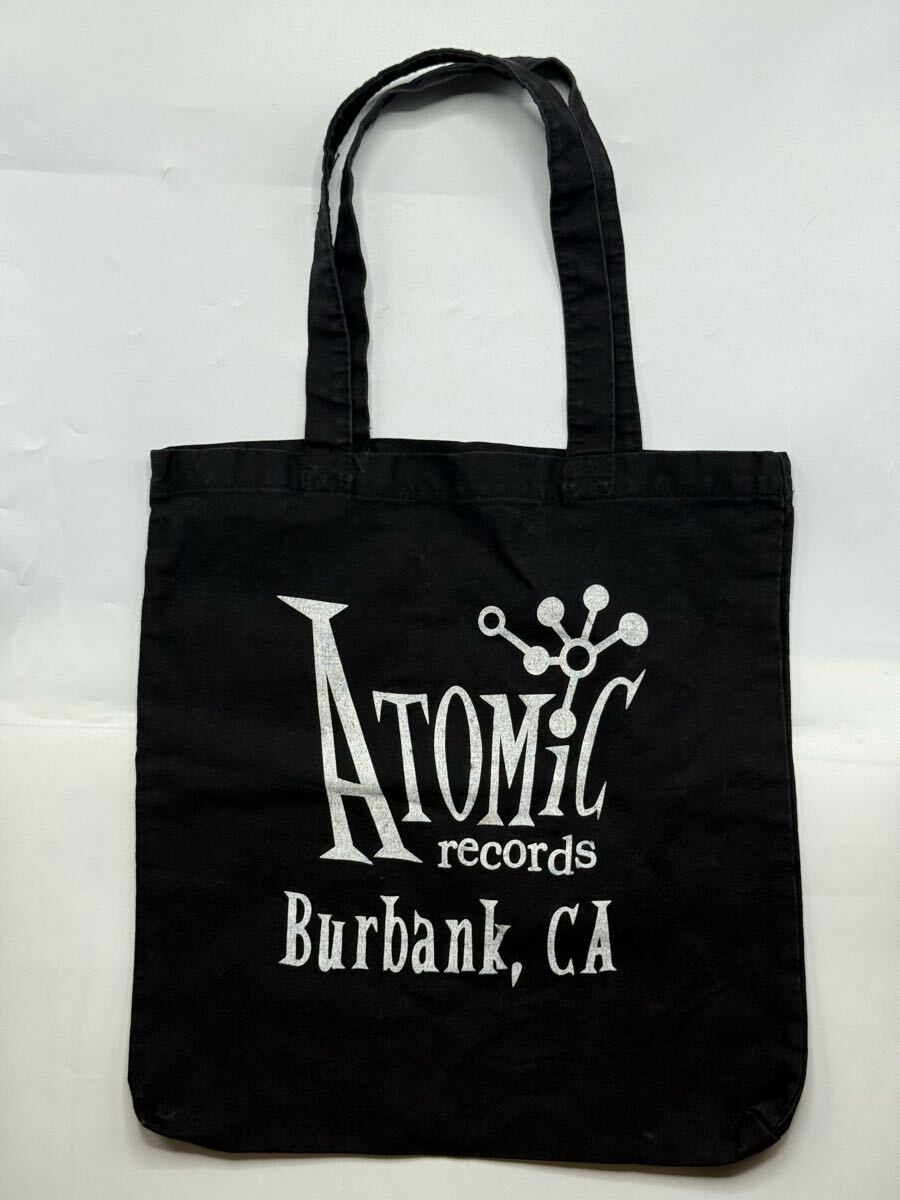 シンプルでスタイリッシュな黒のトートバッグ、Atomic recordsのロゴ入り。
