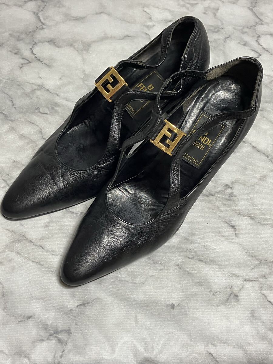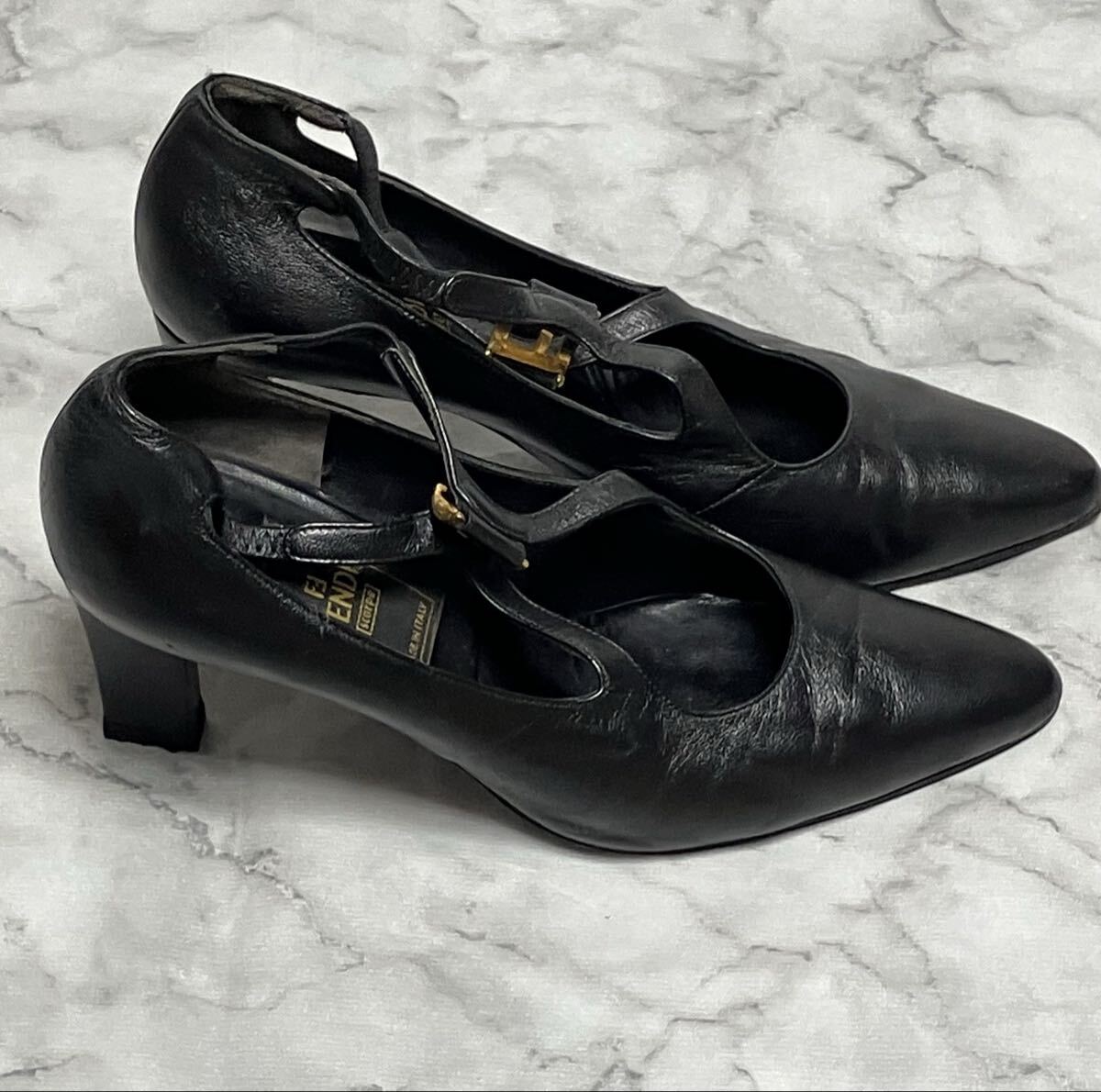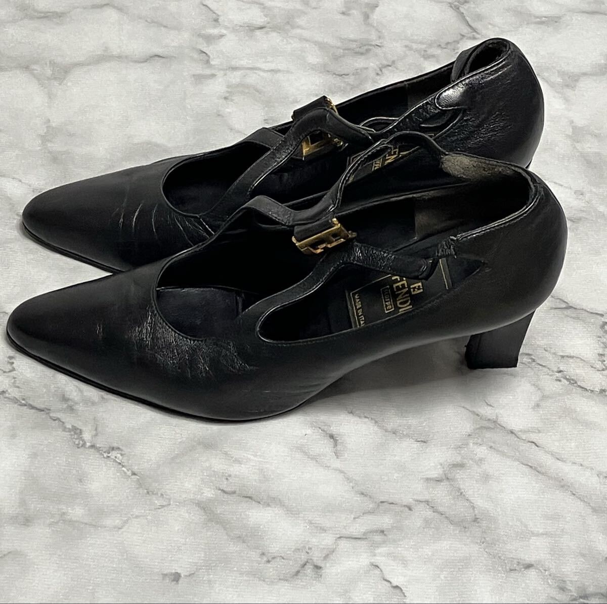 FENDI フェンディ ヴィンテージ ズッカ ズッキーニロゴ ブラック レザー ポインテッドトゥ パンプスです。