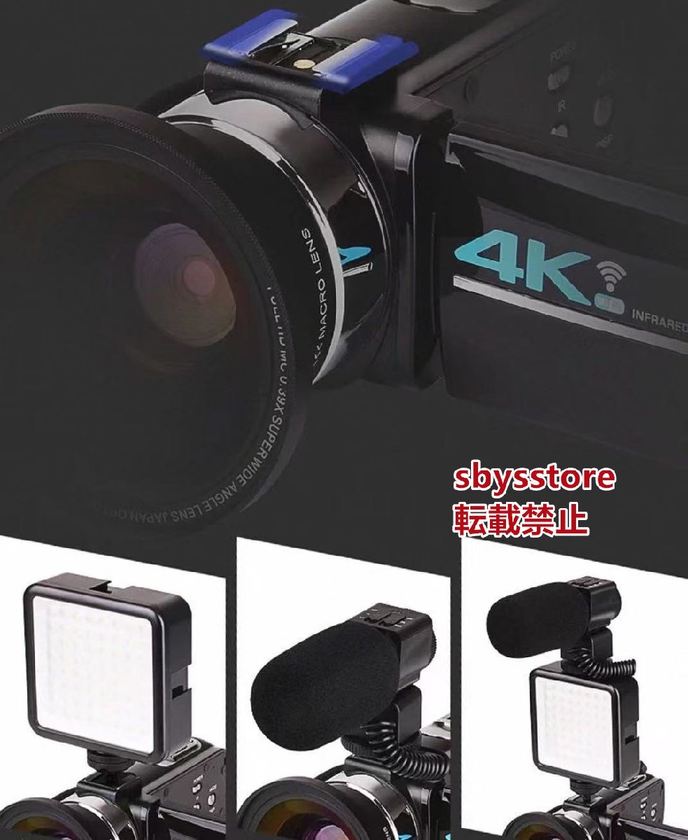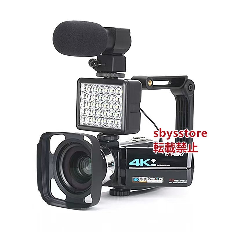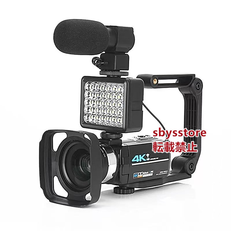 LEDビデオライト、外部マイクやWebカメラ、家族のイベントに最適なカメラと4K 16倍光学ズームのビデオカメラ48MP動画