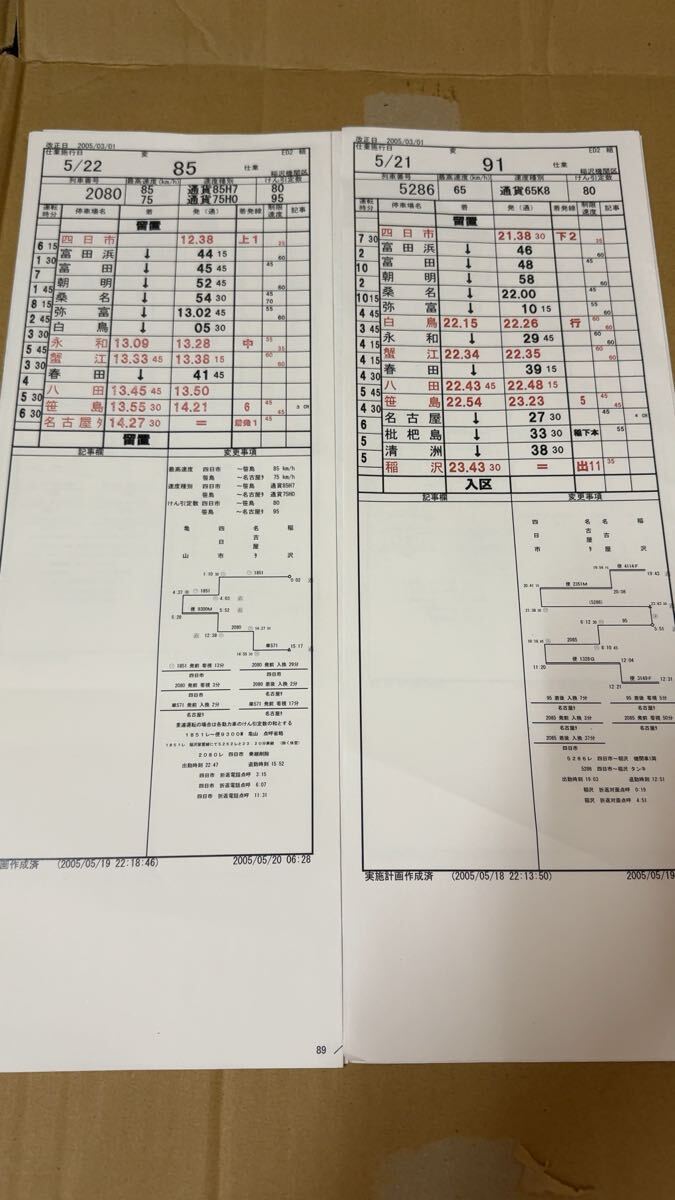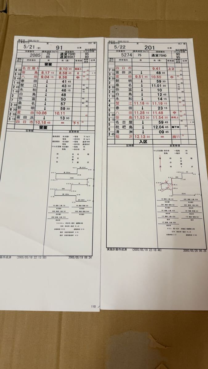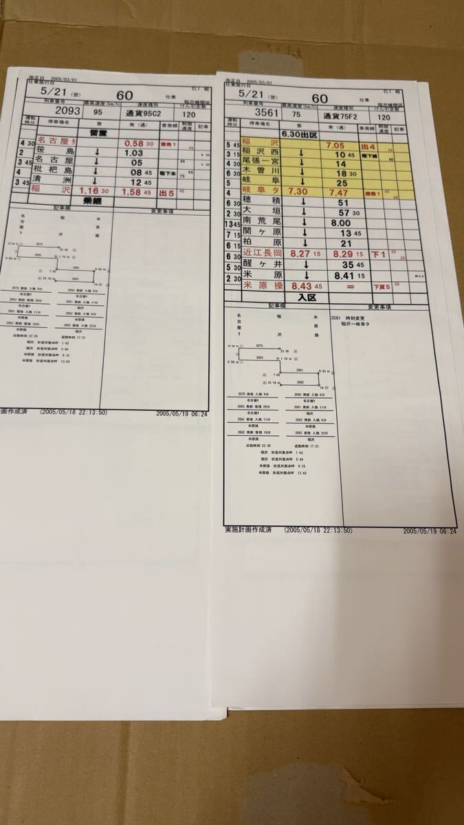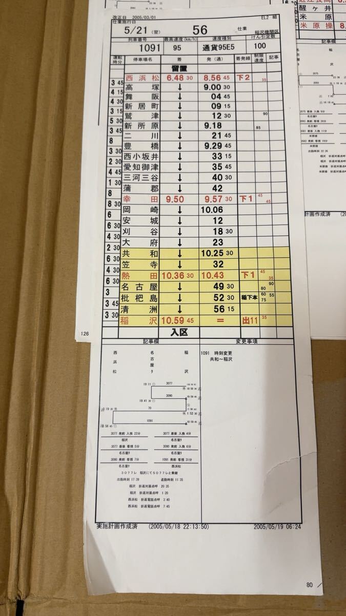 運転時刻表 スタフ JR貨物 西浜松→稲沢 他7枚セット 現状渡し品