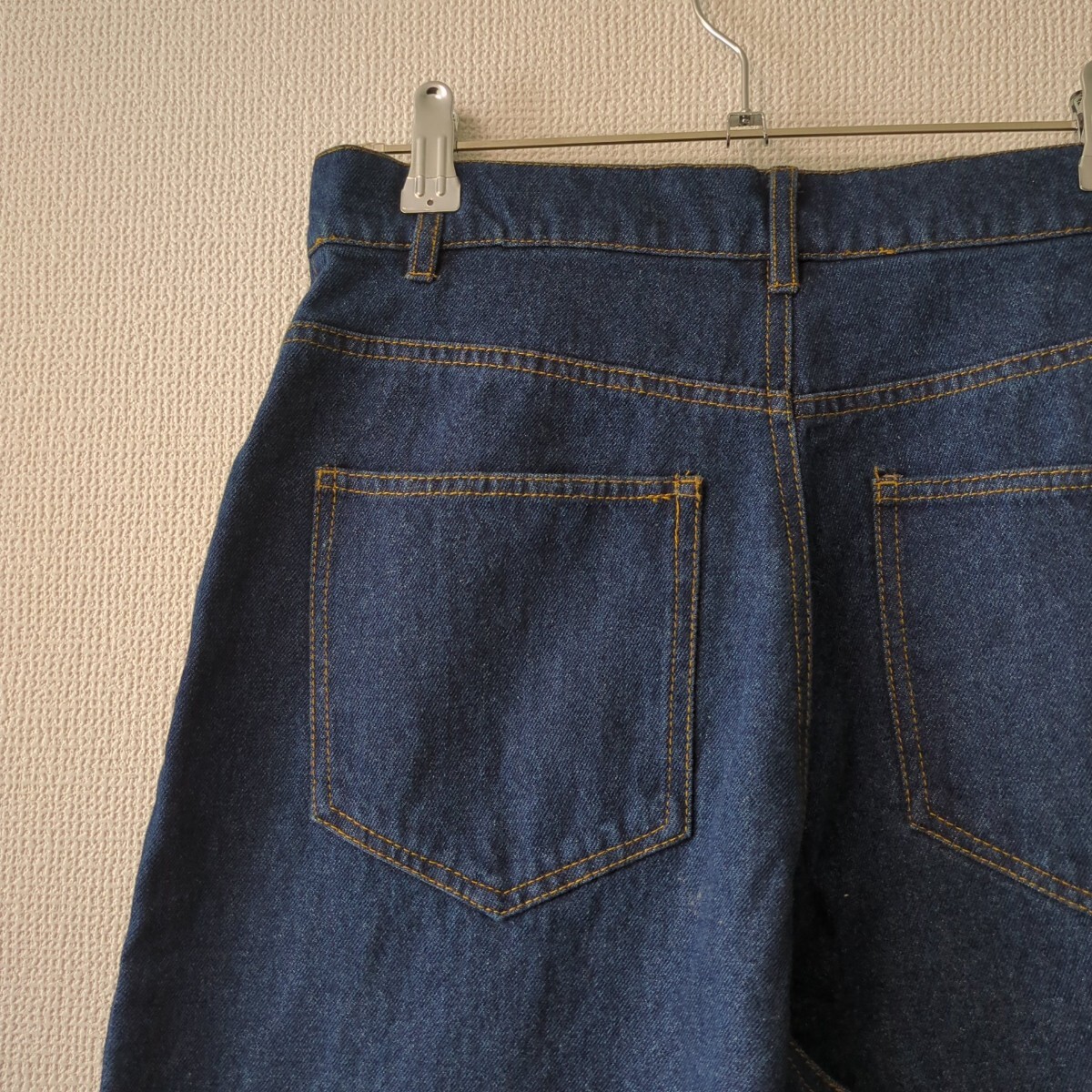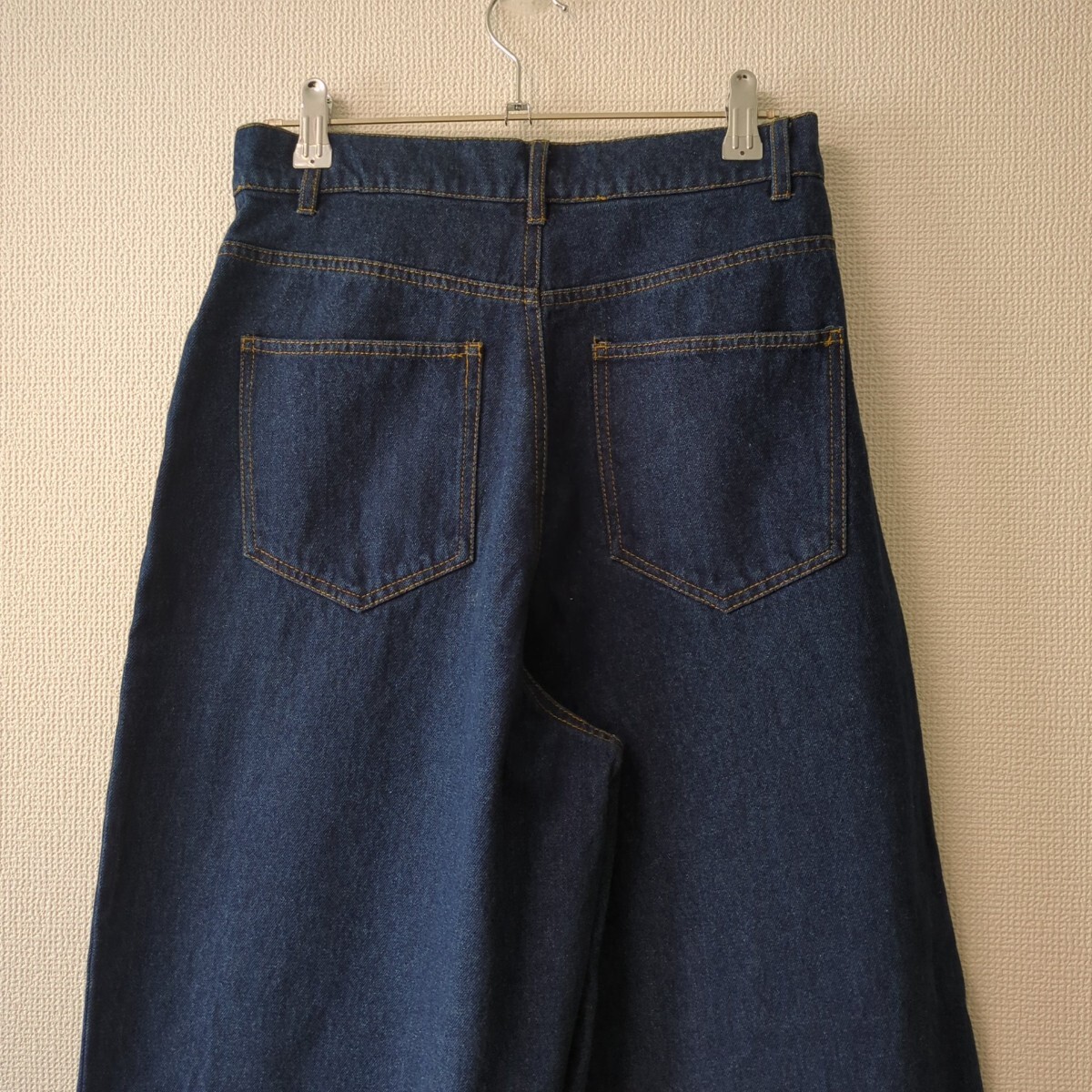 ゆったりとしたワイドシルエットのデニムパンツ。