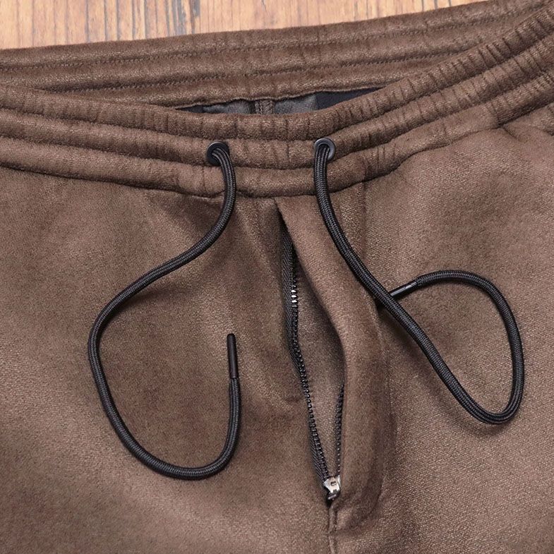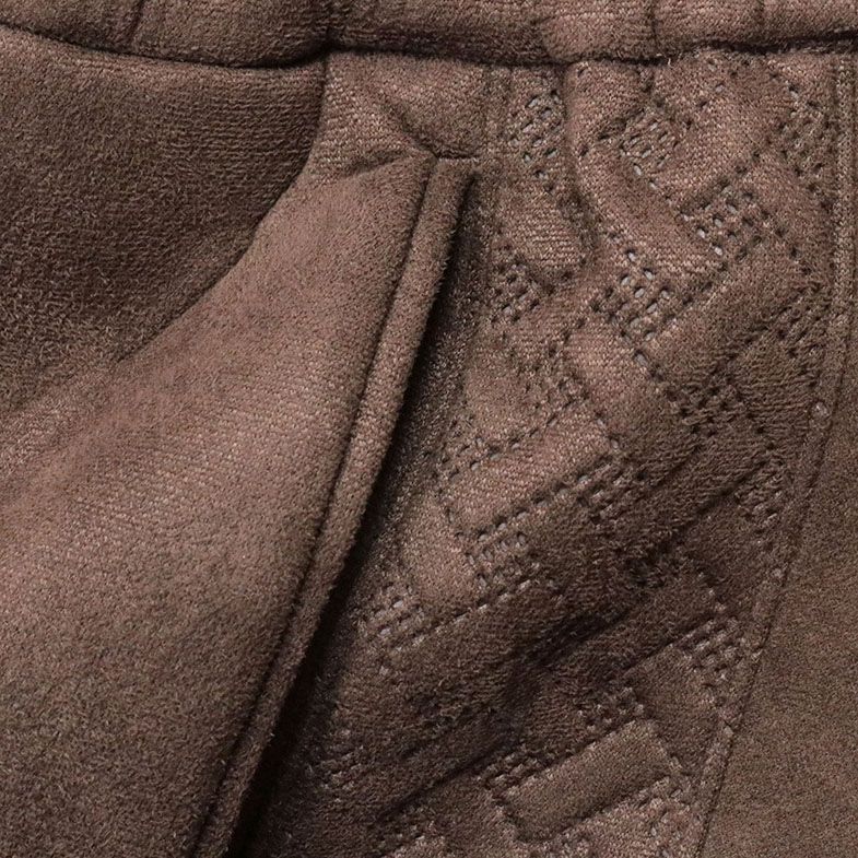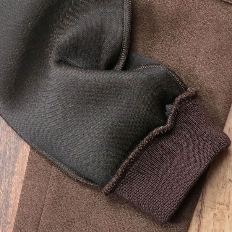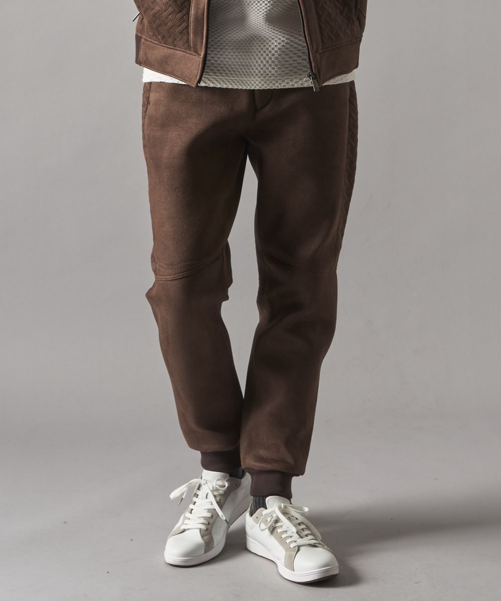 なめらかな肌触りが心地よく、伸縮性に優れた快適な着心地のダンボールスエードを使用したジョガーパンツ。リラックスなムードで着こなせる大人好みなアイテムです。