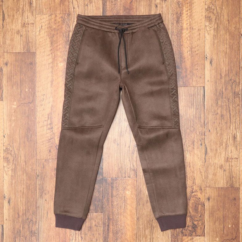 1円/秋冬/TETE HOMME/Lサイズ/イージーパンツ ダンボールスエード ストレッチ◎ サイド編み柄 ジョガー 新品/茶色/ブラウン/ja151/