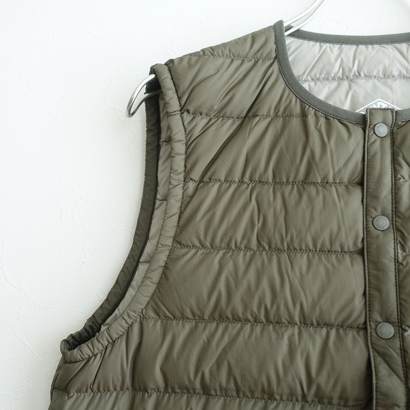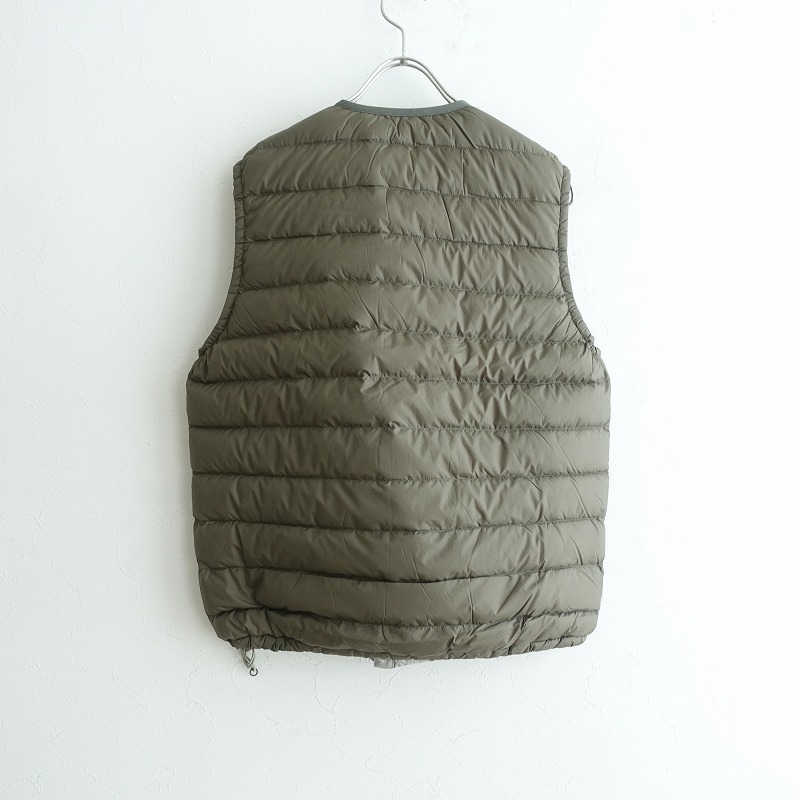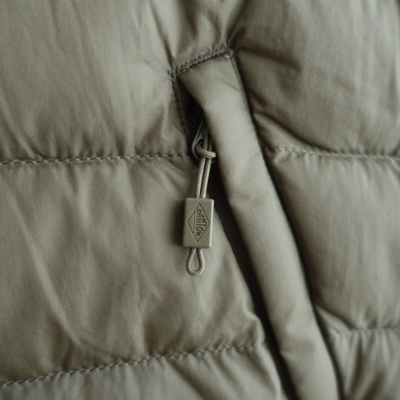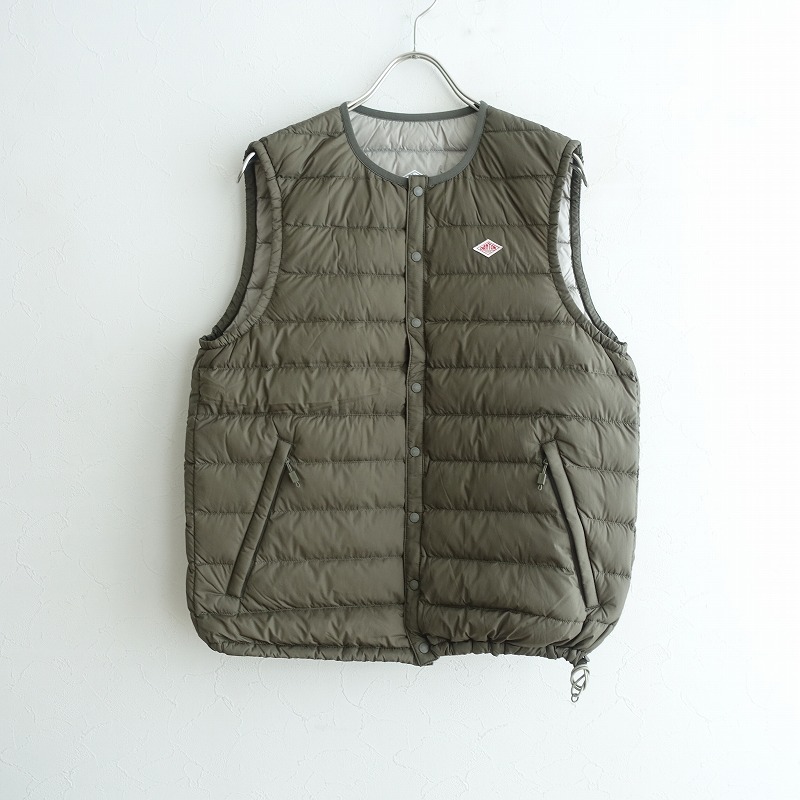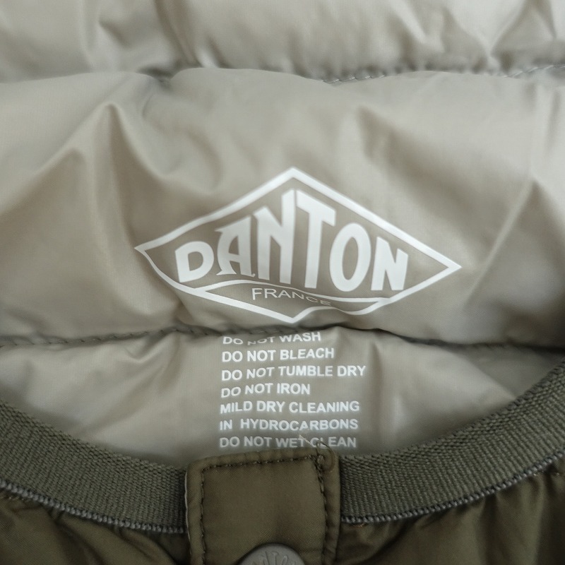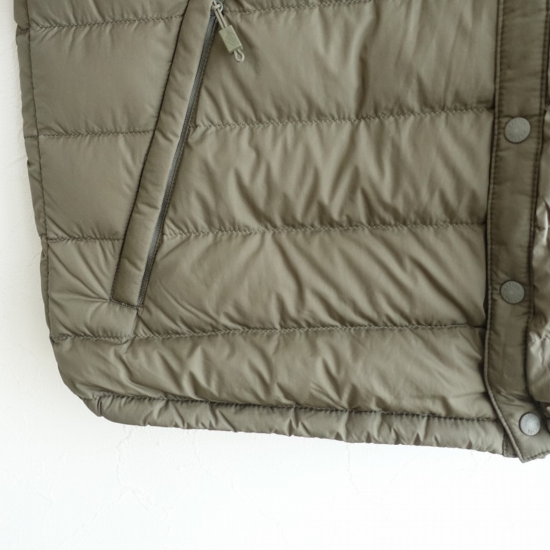 | 2023年コレクション DANTONのダウンベストです。カラーはカーキグリーンです。両面ナイロン100%の密に織られた薄手のタフタ生地を使用。フロントはオリジナルのドットボタン仕様。ネックはリブのパイピング仕様。裾はストッパー付きのゴムコード入りです。前両腰にジップポケットがございます。定価(メーカー希望小売価格)18,700円の商品です。 |