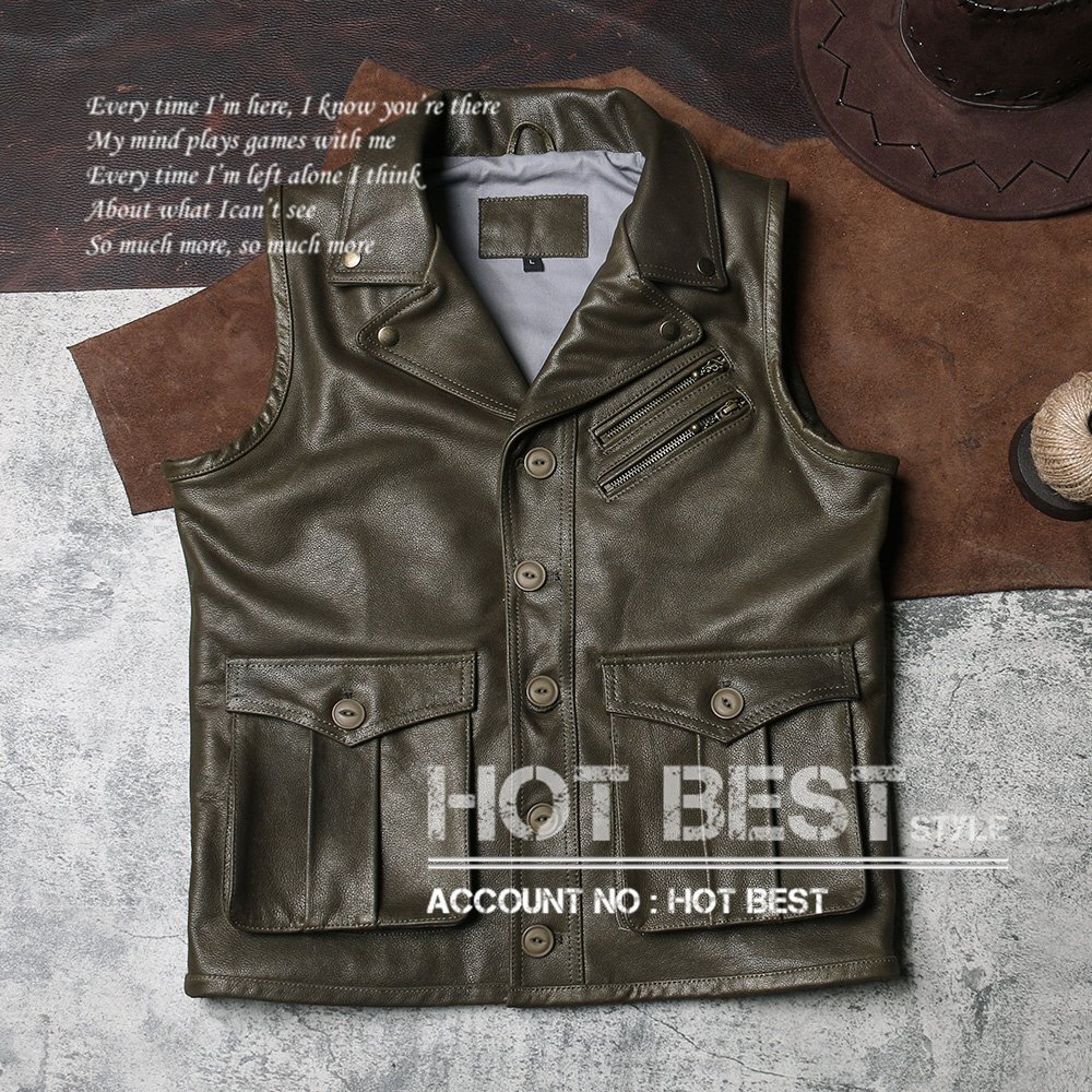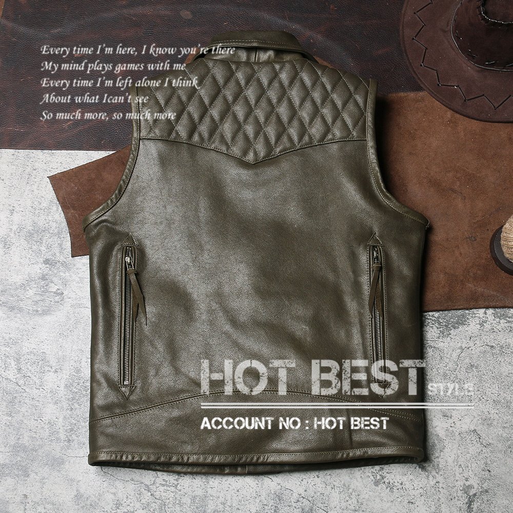 1.0mm カウハイド 本革 メンズ レザーベスト 本革ベスト 皮ベスト ジレ レザージャケット 牛革 Y1562/XXXXL
