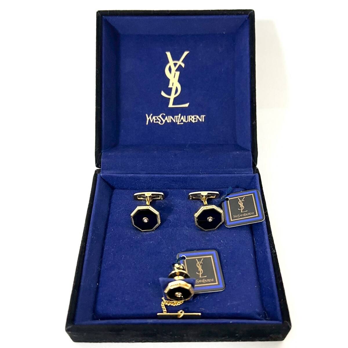 SD2519 YVES SAINT LAURENT イヴサンローラン 1Pダイヤ カフス カフリンクス カフスボタン タイピン タイタック ラペルピン SV925 ゴールド