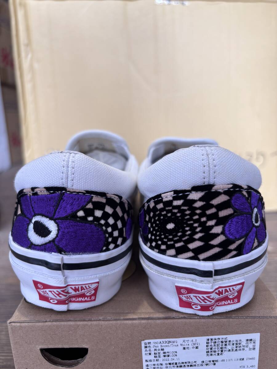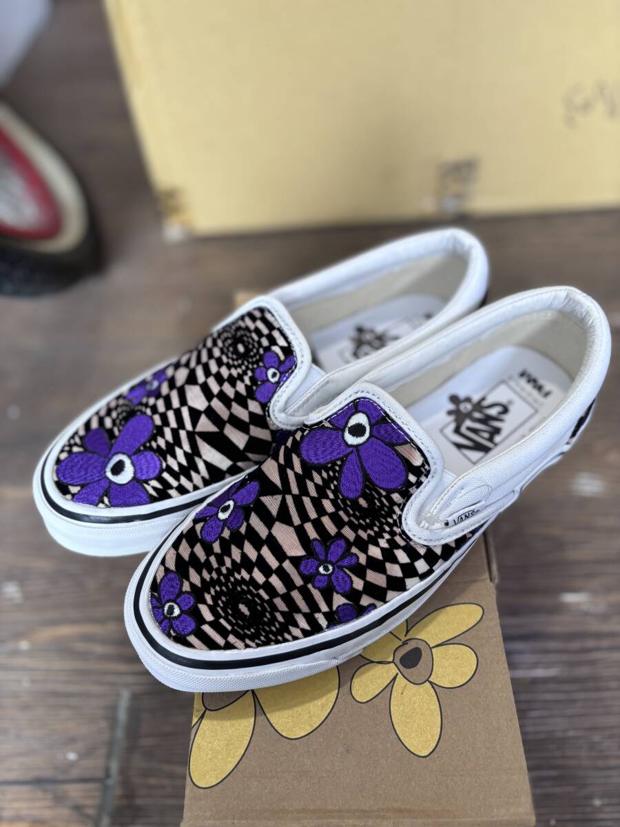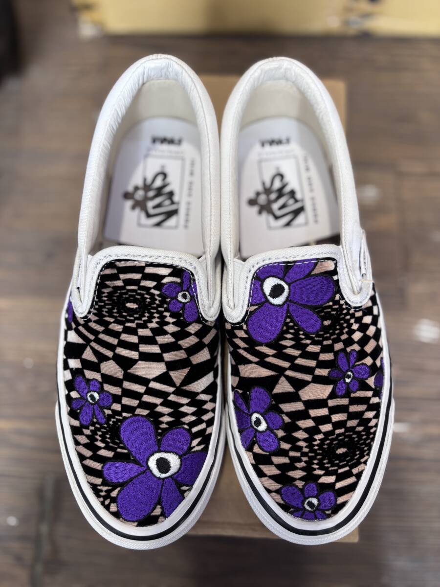 オーストラリア・メルボルン発のファッションブランド「P.A.M.(パークス アンド ミニ)」と、VANSのハイエンドライン「Vault(ボルト)」による初のコラボレーションモデル。ムラ染めを施したキャンバス素材に、P.A.M.のシンボルである螺旋モチーフを取り入れ、VANSを象徴するチェッカーボードパターンをベルベットで表現。さらに花柄刺繍を散りばめることで、両ブランドの世界観が見事に融合した個性的な一足です。コレクションにも、ストリートスタイルのアクセントにもおすすめです。
